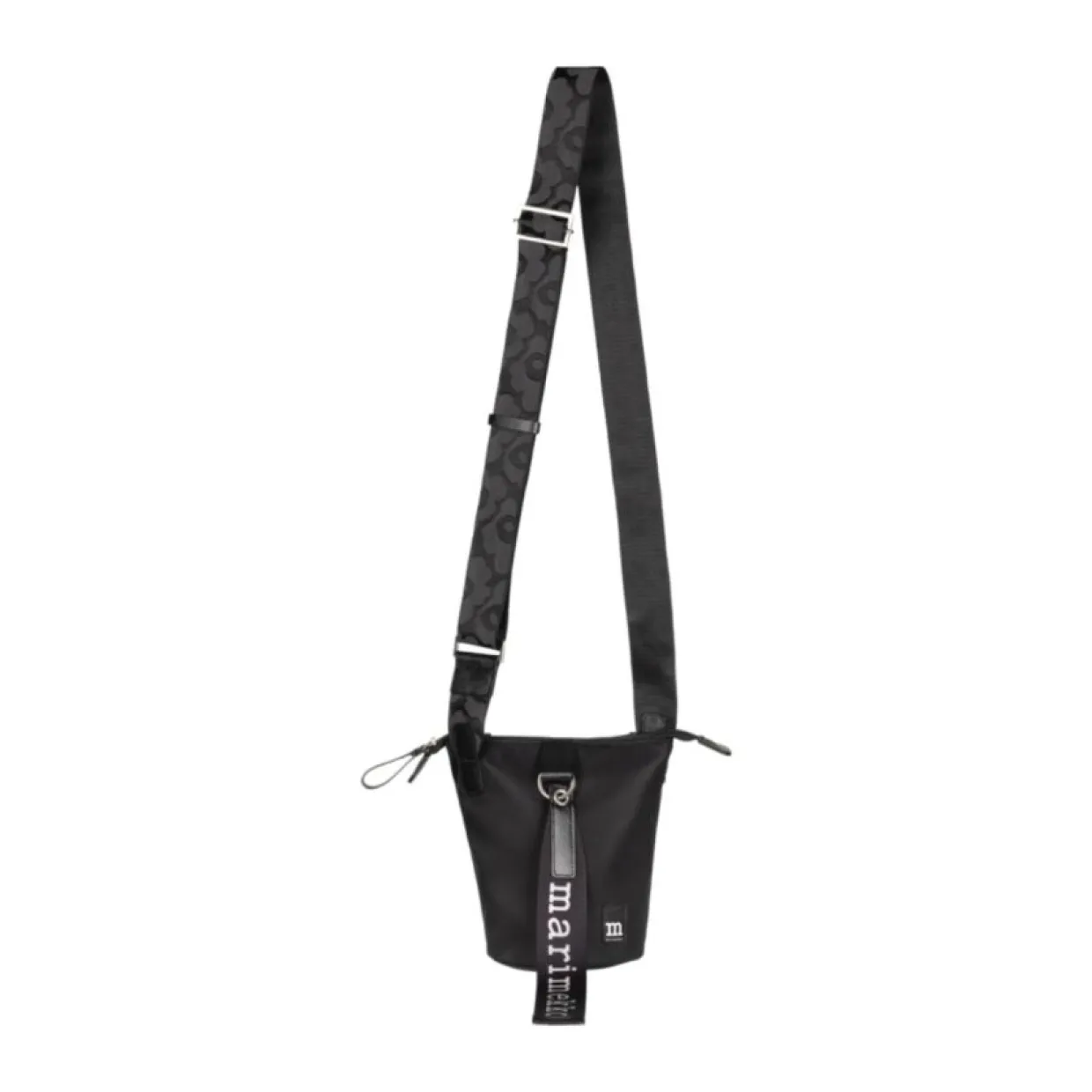 Carry All-axelväskan har en dragkedja, ett handtag och en justerbar, jacquardstickad Unikko-mönsteraxelrem. Det finns en öppen ficka på insidan och Marimekko-nyckelringen är fäst på framsidan. Huvudmaterialet och axelremmen på denna produkt är gjorda av 100 % återvunnen polyester.