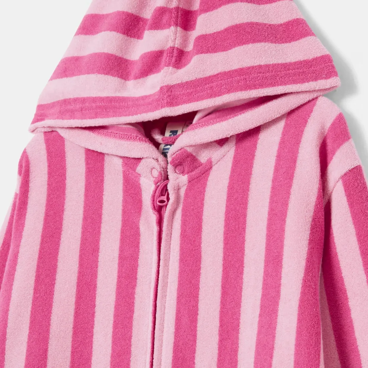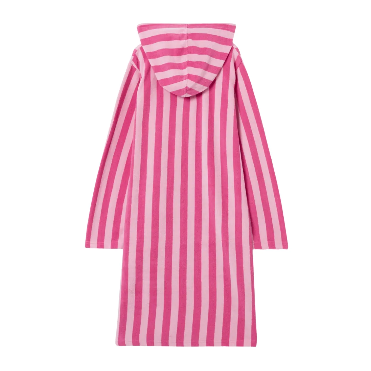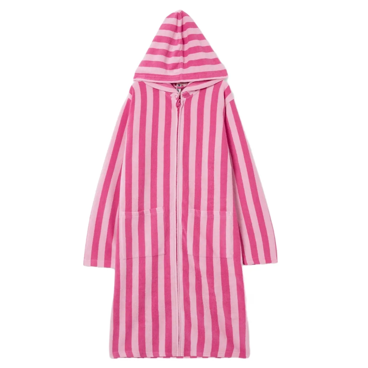 Badrock i bomullsfrotté med huva och dragkedja framtill.