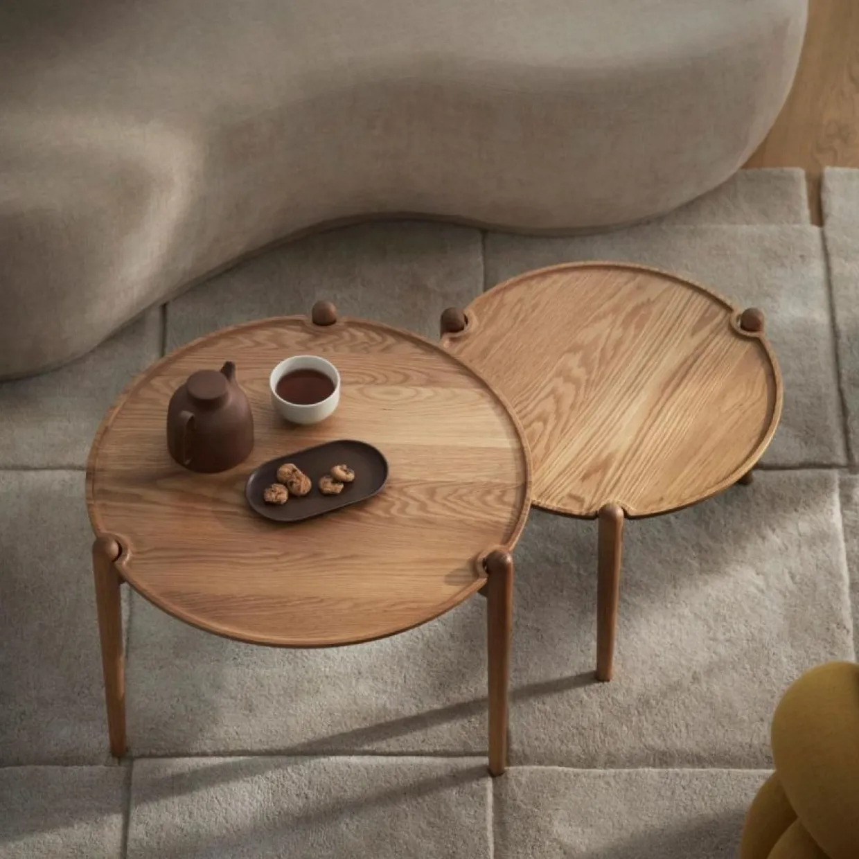 Ett runt bord med en diameter på 50cm i färgen ek från Design House Stockholm. Det finns även i en större storlek. Lägg till den och låt det mindre bordet glida in delvis under det andra bordet för snyggare utseende. Aria-borden kommer att ge karaktär till alla utrymmen: eleganta och med ett lätt utseende. Finns även i andra färger.