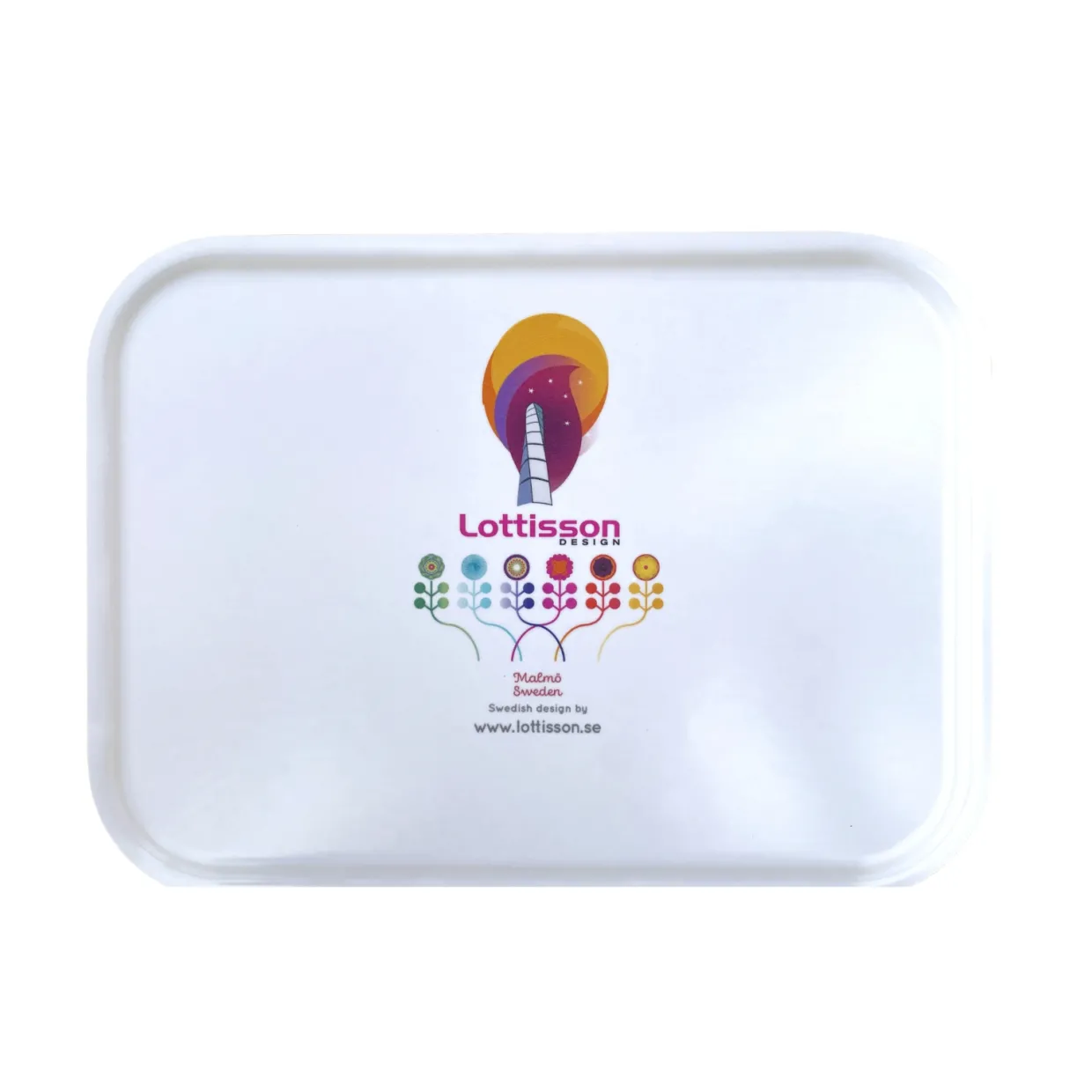 En praktisk och vacker bricka med ett färgstarkt Malmömotiv, illustrerat av Lottis Karlsson. Med sin lekfulla stil lyfter Lottis fram stadens unika karaktär genom noggrant utvalda symboler och detaljer som speglar känslan av Malmö.