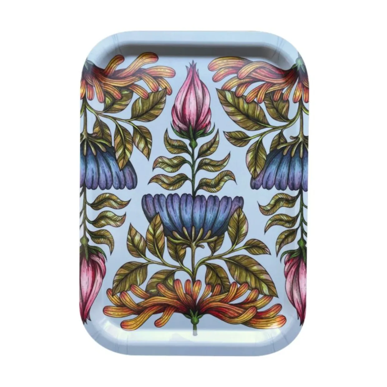 En flirt med Dalarnas vackra kurbitsar, men här är det fantasiblommor ritade med tusch som gäller. Denna bricka är aningen större än de ”klassiska” smörgåsbrickorna. På denna får du plats med macka, kaffe, bulle OCH snusdosa…
