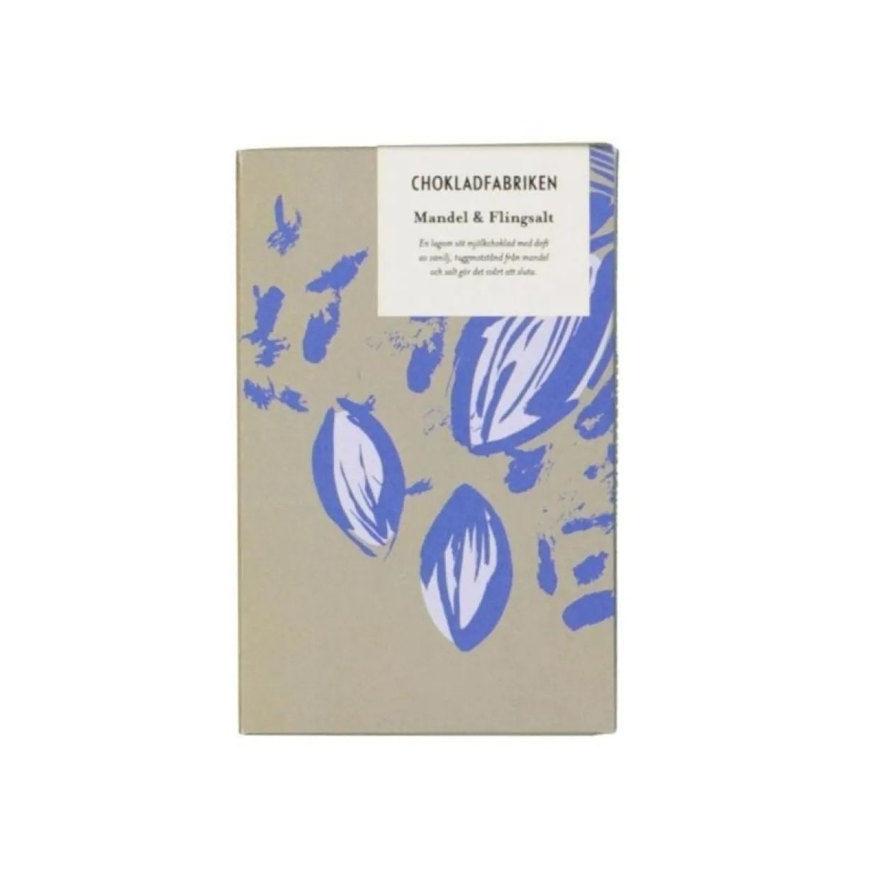 En lagom söt mjölkchoklad med doft av vanilj, tuggmotstånd från mandel och salt gör det svårt att sluta. Tillverkad för hand på Södermalm i Stockholm. Förvaras svalt, 16-18 grader Celsius. Tillverkad av Chokladfabriken.