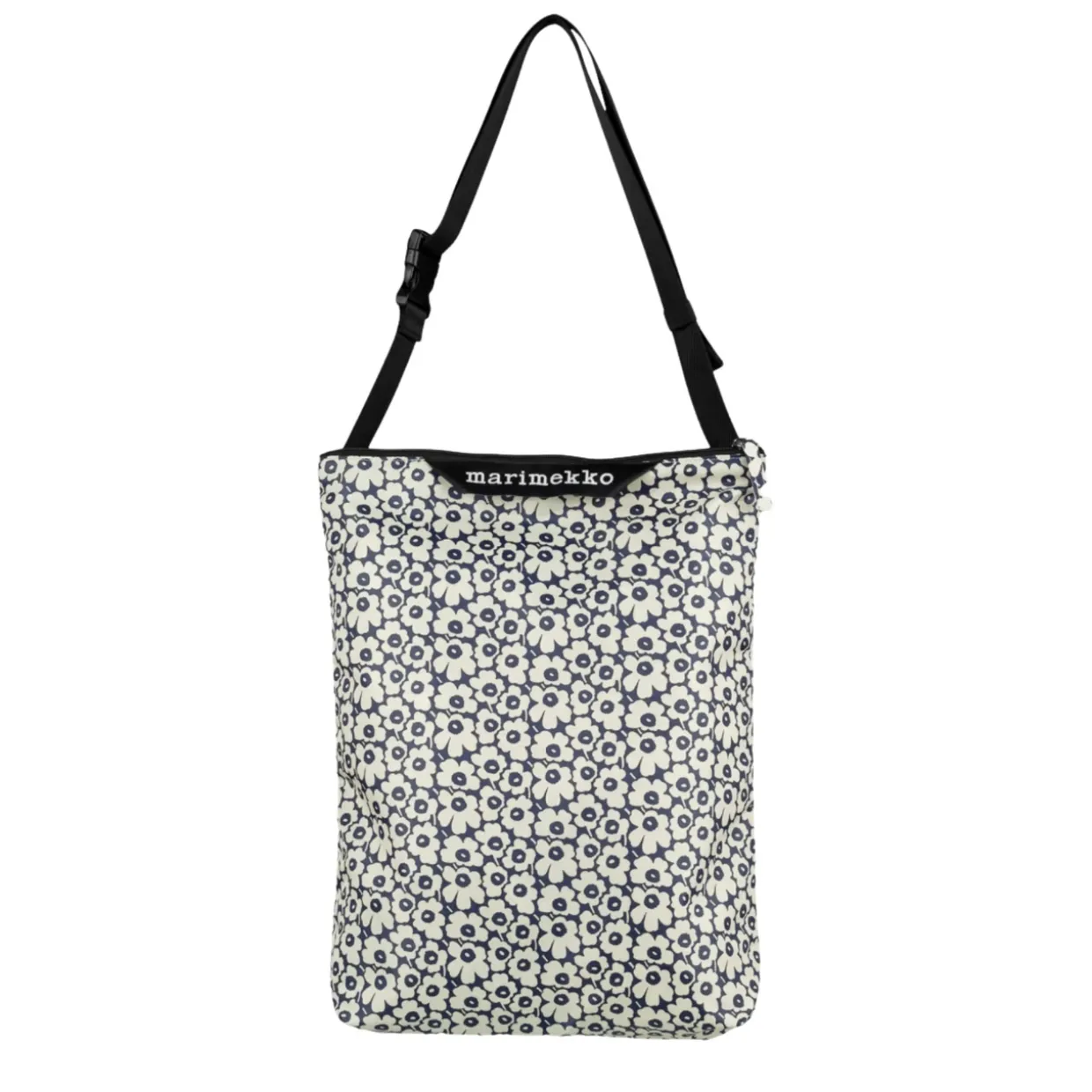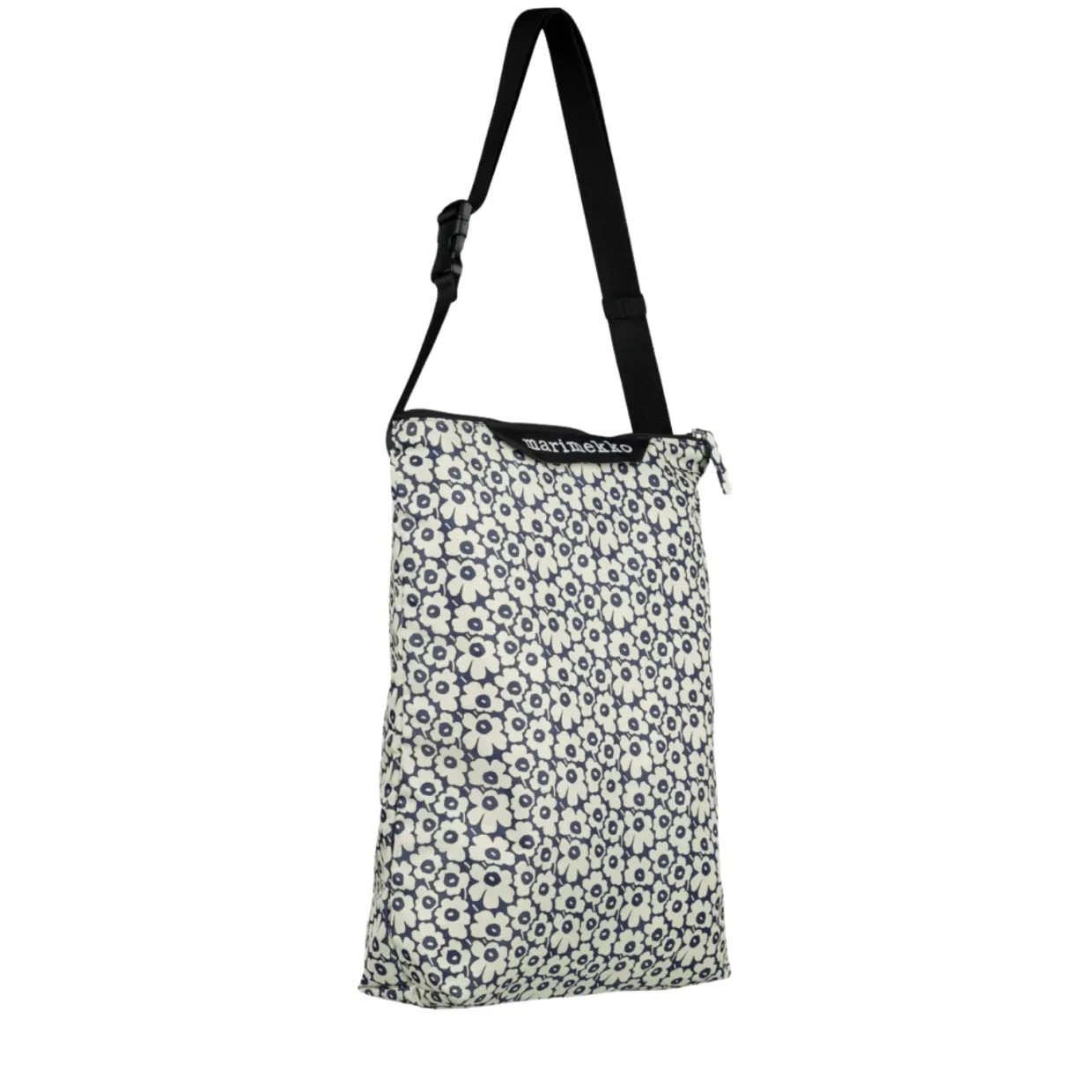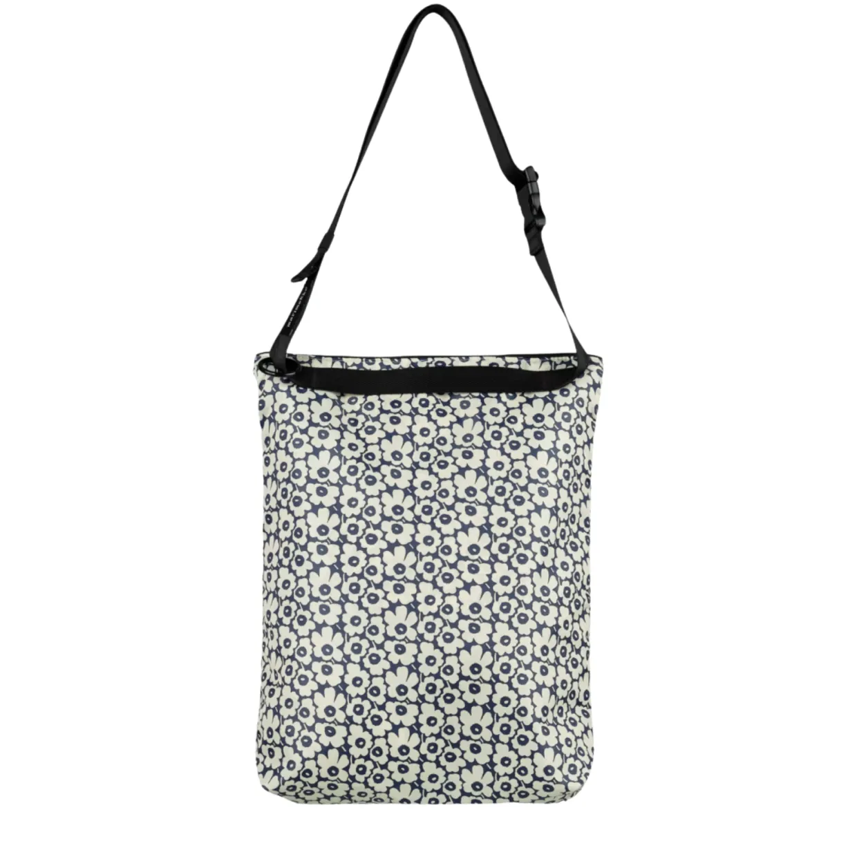 Axelremsväskan Neat Crossbody M är tillverkad i återvunnen polyester med Unikko-mönster. Väskan har en justerbar axelrem i återvunnen polyamid. Den har dragkedjestängning, Marimekko-loggan framtill och ett innerfack där hela väskan kan vikas ihop för smidig förvaring.