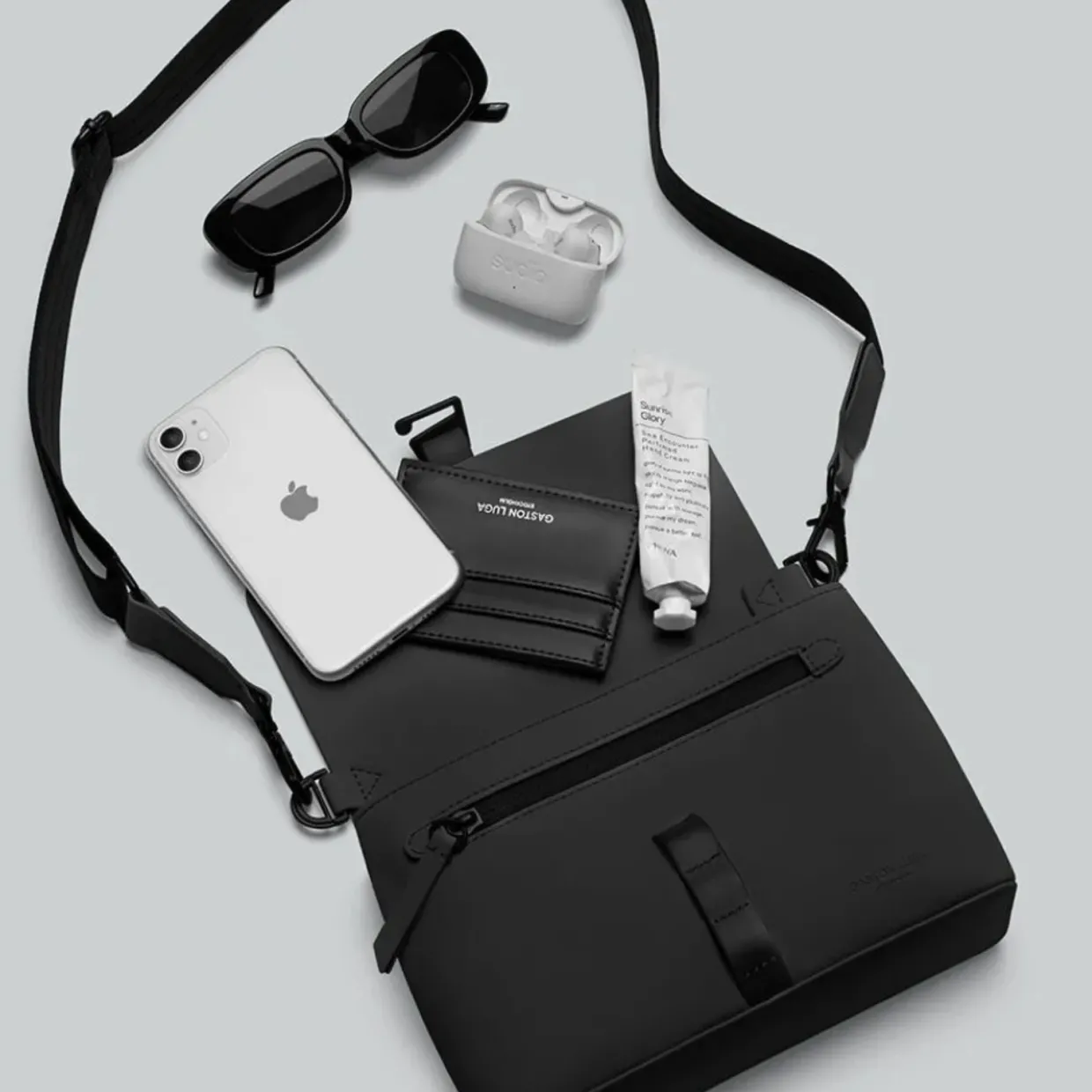 Förbättra din look med Spläsh moon crossbody-väskan från Gaston Luga. Tillverkad av miljövänligt vattentätt material med en 8000 mm rating, kombinerar den sömlöst stil och användbarhet. Håll dig bekväm med den justerbara axelremmen, medan inre och yttre fack säkerställer organiserad förvaring.
