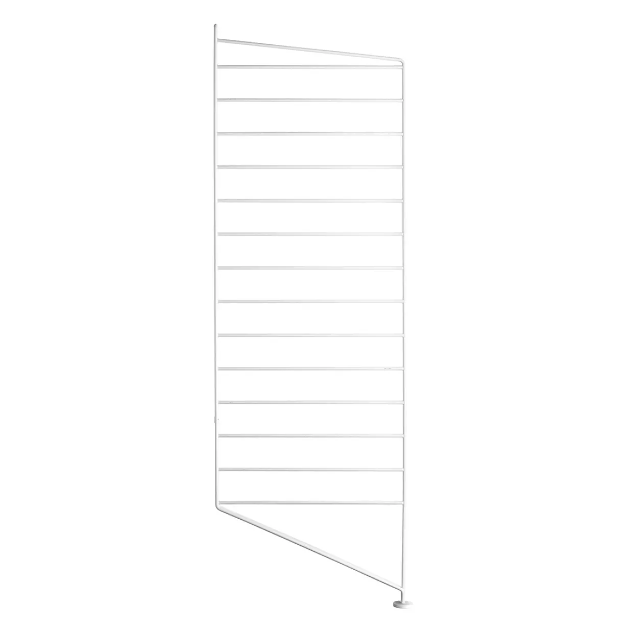 Golvgavlar finns i tre höjder, 85 cm, 115 cm, 200 cm, samt ett djup, 30 cm. Gavlarna är basen för att bygga din stringhylla. Därefter kan du addera produkter från String System förutsatt att de har 30 cm djup. Välj mellan en rad olika produkter så som hyllplan, skåp, lådhurtsar och tidskriftshyllor. Golvgaveln vilar mot golvet med sin fot vilket gör den väldigt stabil men samtidigt ger en lätt och luftig känsla. För att göra din hylla ännu mer funktionell och unik kan du komplettera med organizers, knivblock eller en tidskriftssamlare som hängs på gaveln. Golvgavlarna säljs i både 1-pack och 2-pack.