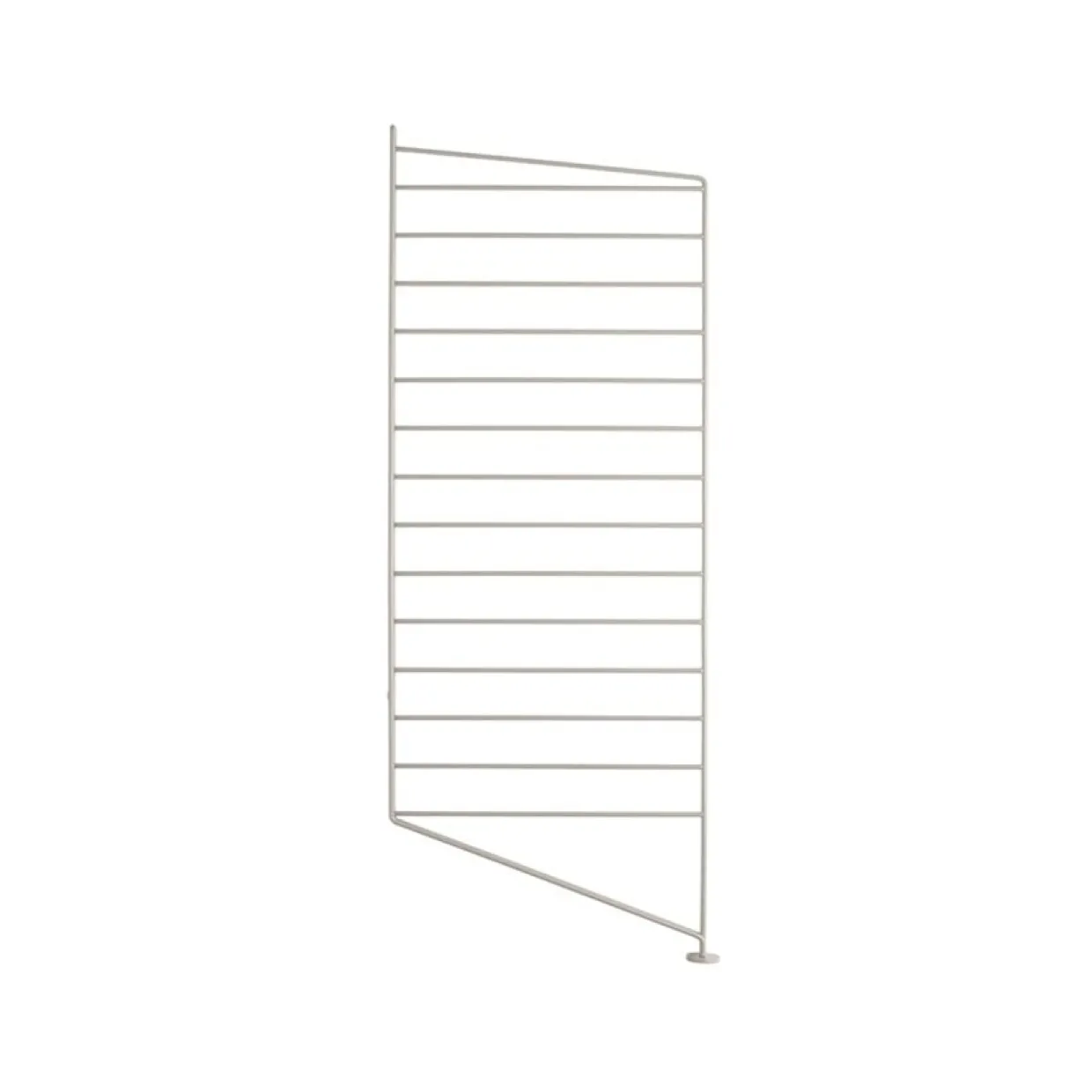 Golvgavlar finns i tre höjder, 85 cm, 115 cm, 200 cm, samt ett djup, 30 cm. Gavlarna är basen för att bygga din stringhylla. Därefter kan du addera produkter från String System förutsatt att de har 30 cm djup. Välj mellan en rad olika produkter så som hyllplan, skåp, lådhurtsar och tidskriftshyllor. Golvgaveln vilar mot golvet med sin fot vilket gör den väldigt stabil men samtidigt ger en lätt och luftig känsla. För att göra din hylla ännu mer funktionell och unik kan du komplettera med organizers, knivblock eller en tidskriftssamlare som hängs på gaveln. Golvgavlarna säljs i både 1-pack och 2-pack.
