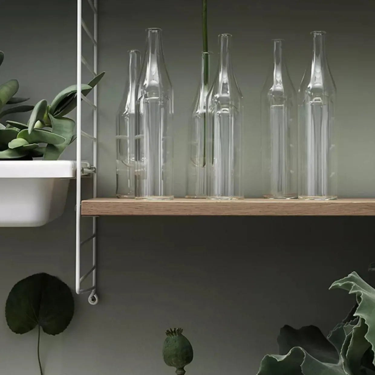 Hyllplanen i trä finns i två bredder, 58 cm och 78 cm, samt två djup, 20 cm och 30 cm. Hyllplanen passar med tråd- och plexgavlar från String System så länge hyllplanen och gavlarna har samma djup. Hyllplanen är smidiga och enkla att flytta runt efter tycke och smak. Skapa en hylla i ett monokromt utförande eller blanda hyllplan i olika färger och träslag. Varje förpackning innehåller tre hyllplan samt hyllbärare.