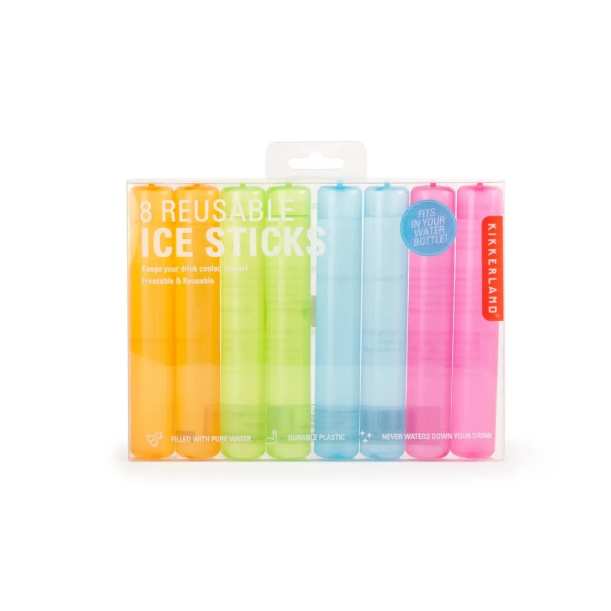 Denna uppsättning med 8 återanvändbara ispinnar i en härlig färgkombination har en smal form som passar perfekt i din vattenflaska och håller din dryck svalare längre under sommarens varmaste dagar. Från vrumärket Kikkerland!