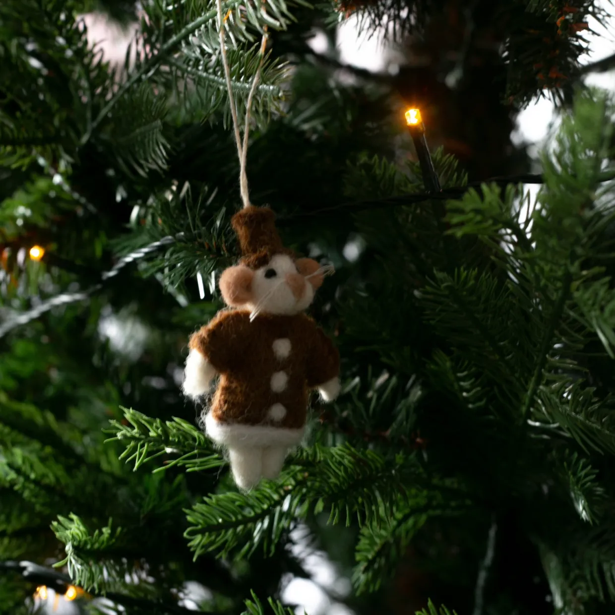 Julhänge Pepparkaksgubbe från A World of Craft är en förtjusande liten mus i handtovad ull som sprider värme och charm i julgranen. Med sin gulliga pepparkaksdräkt blir den ett lekfullt och unikt tillskott till dina juldekorationer. Denna handgjorda dekoration ger julgranen en personlig och hemtrevlig touch och passar perfekt att kombinera med andra julhängen för en fulländad julstämning. En idealisk julklapp eller en fin detalj att pryda ditt hem med under högtiden.