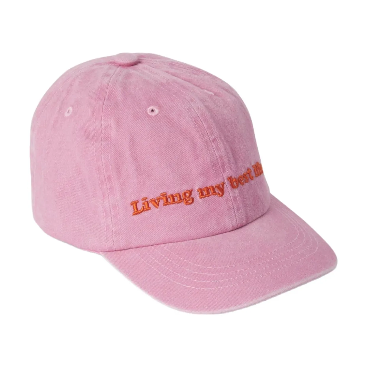 Stentvättad keps i klassisk 5-panelsdesign och broderad text framtill.