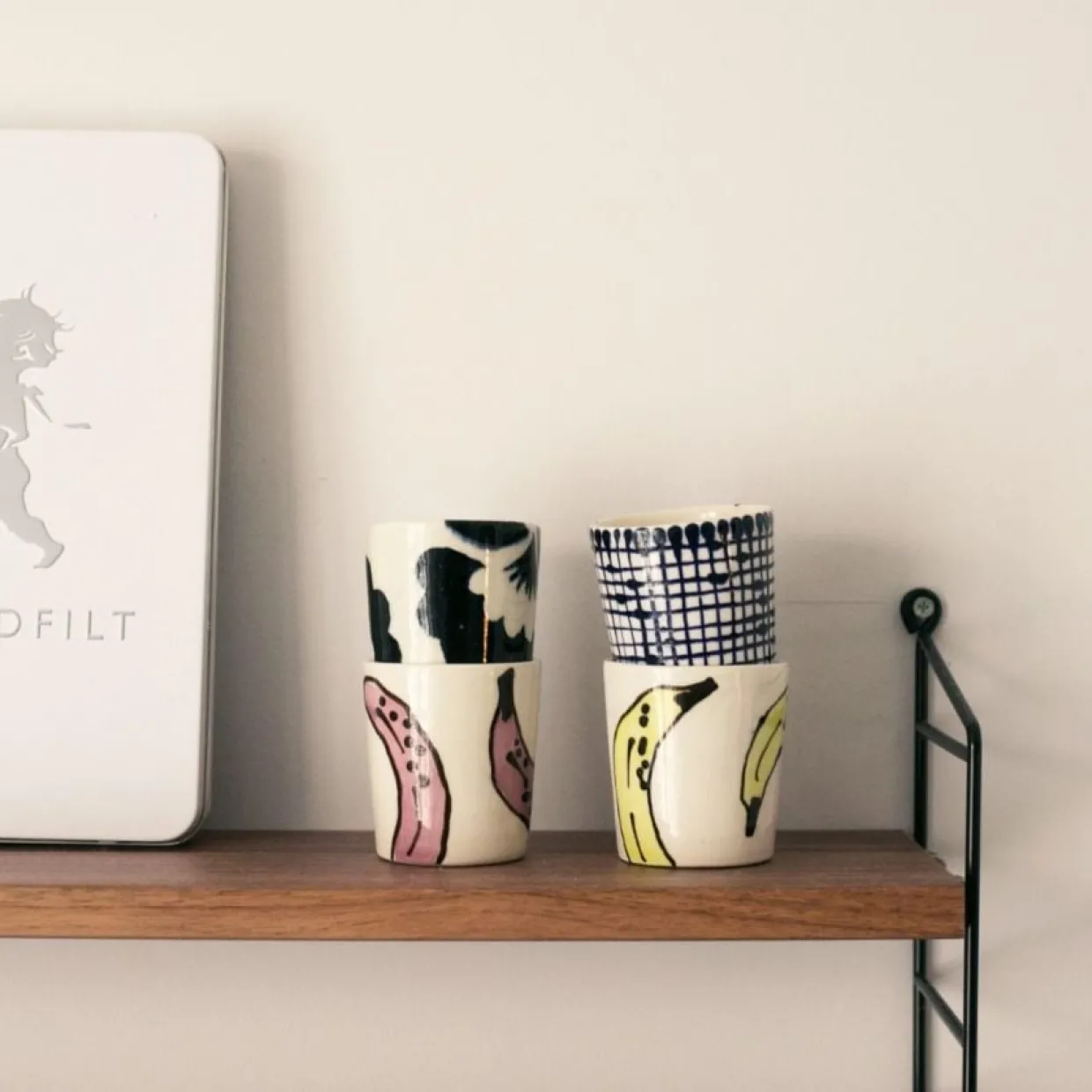 Anna Broström Ek har skapat denna fina kollektion av små koppar som är perfekta för espresso, juice eller varför inte använda den till att samla pennor på skrivbordet? Muggarna görs av stockholmsbaserade Anna Broström Ek som främst arbetar med handmålat bruksgods. Produkterna är dekorerade med hennes typiska färgglada motiv och är tänkt att kombineras för att skapa egna unika kollektioner, mixa och matcha med kaffekopparna i samma kollektion!