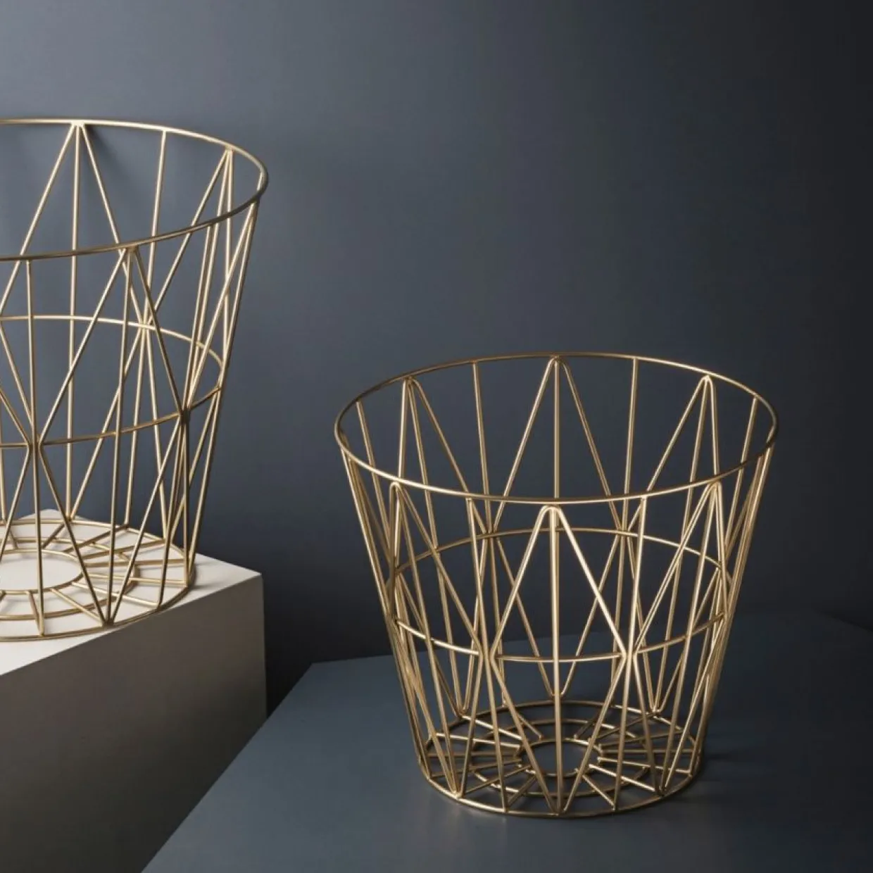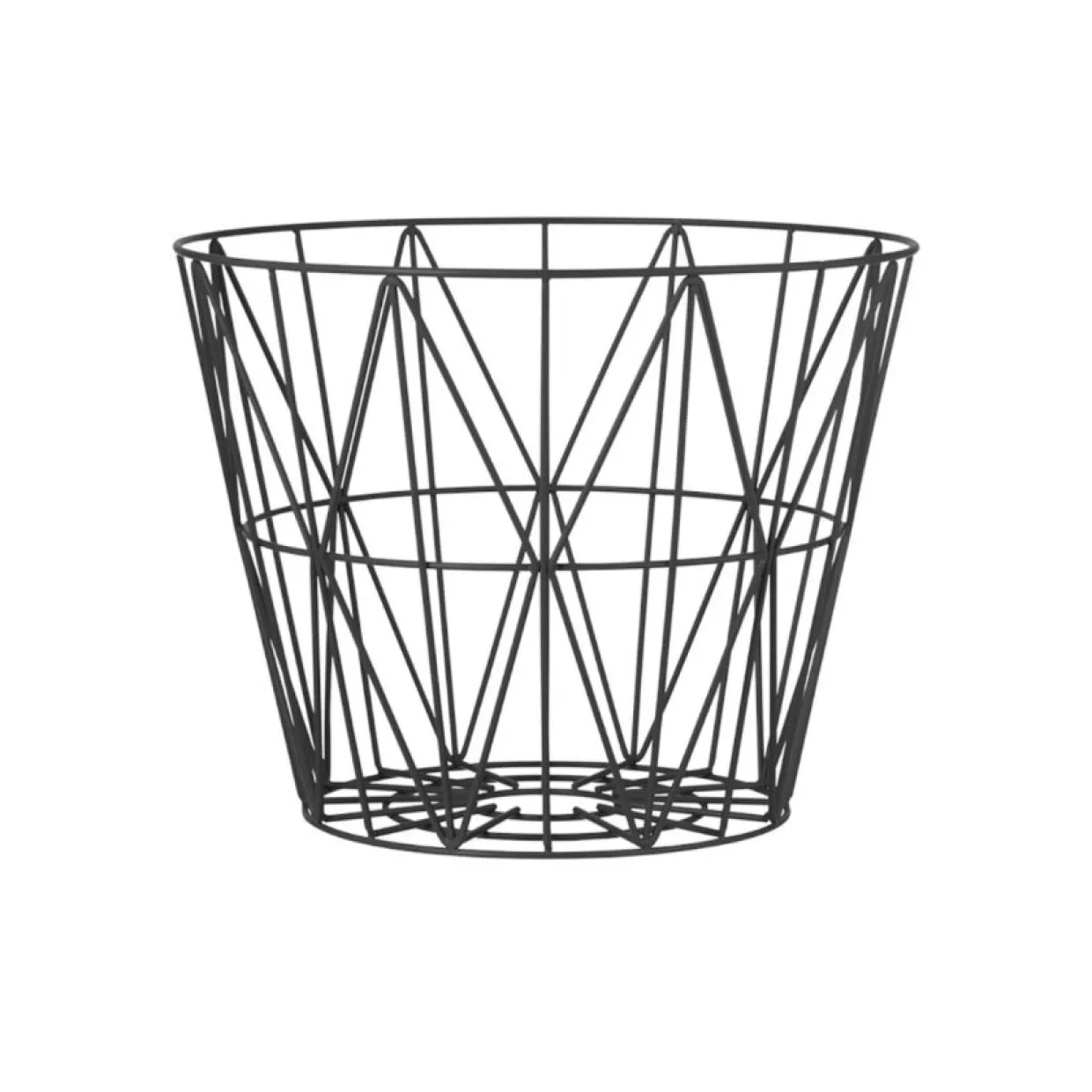 Korgen Wire från danska Ferm Living är en multifunktionell korg som enkelt kan omvandlas till ett bord. Korgen är tillverkad av pulverlackat stål och rymmer allt från filtar, kuddar, ved till leksaker. Komplettera med en toppskiva för att använda förvaringskorgen som bord.