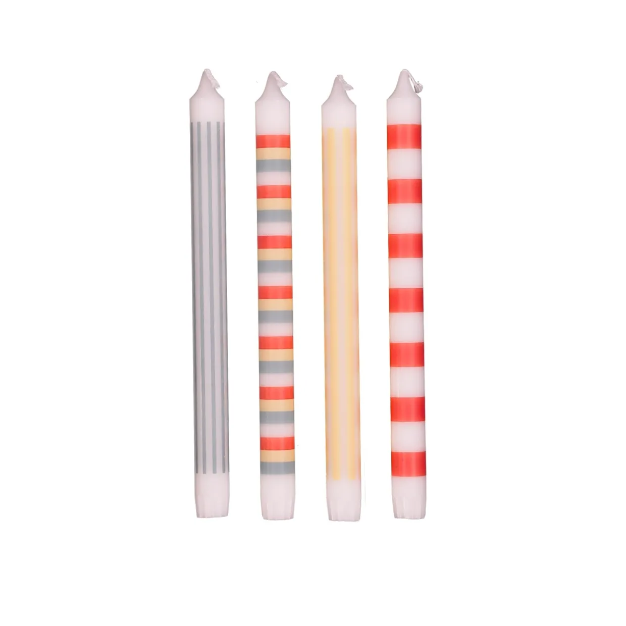 Randiga kronljus från Created by Designtorget i 4-pack, en härlig stämningshöjare för sena höst- och vinterkvällar. Ljusen är tillverkade av 100% stearin och blir perfekt att använda i en adventsljusstake. Finns i olika färgställningar.