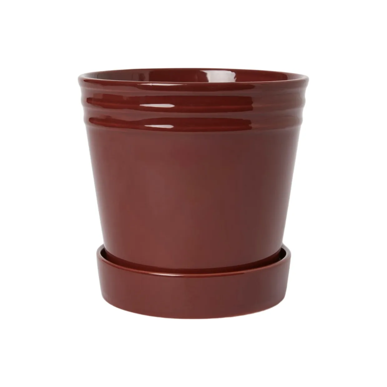 Kruka tillverkad av glaserad stengods eller terrakotta.