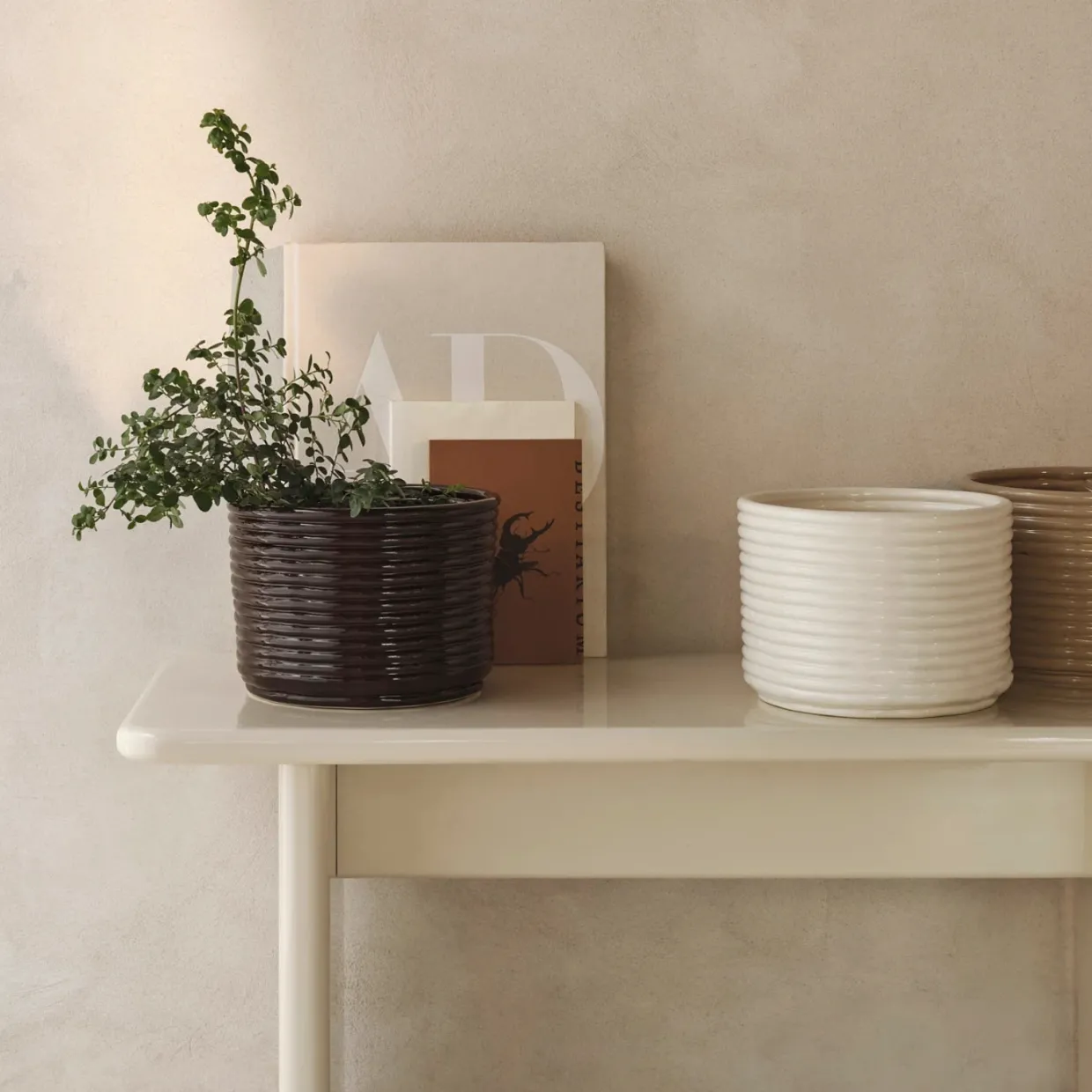 Corduroy-krukan är noggrant tillverkad av glaserad keramik och ger ditt hem en autentisk känsla av hantverk. Krukan är formad för hand genom att en lång sträng av lera försiktigt rullas till en cylinder.