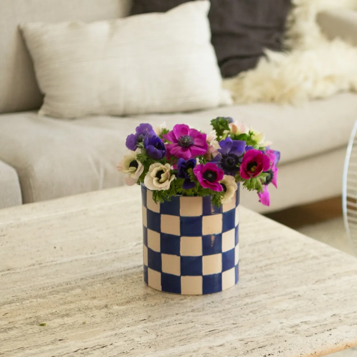 Kruka med rutmönster som påminner om ett schackbräde. För dig som vill få gröna fingrar eller ge bort en unik kruka till någon i present är denna kruka den ultimata gåvan att ge bort. Kommer i olika färger.