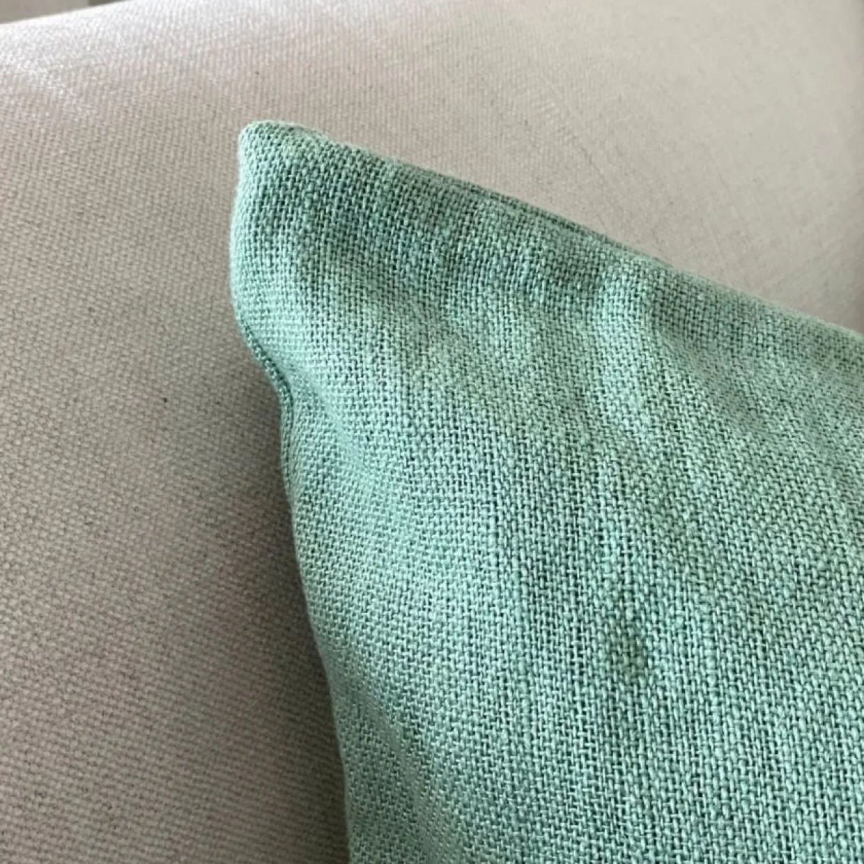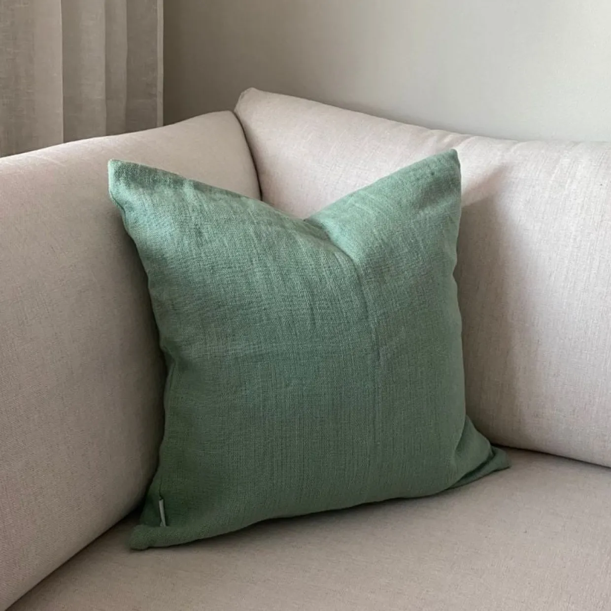 Kuddfodral i 100% linne i färgen grön. En tidlös, enfärgad design som passar i de flesta hem och kan följa med under flera år. Den grova linnekvaliteten har en väv som lyfter fram linets vackra lyster och ger en mjuk och härlig känsla. Kuddfodralet är fodrat för ännu bättre hållbarhet. Finns i olika färger och storlekar som är fina att blanda eller att matcha med våra mönstrade kuddar.