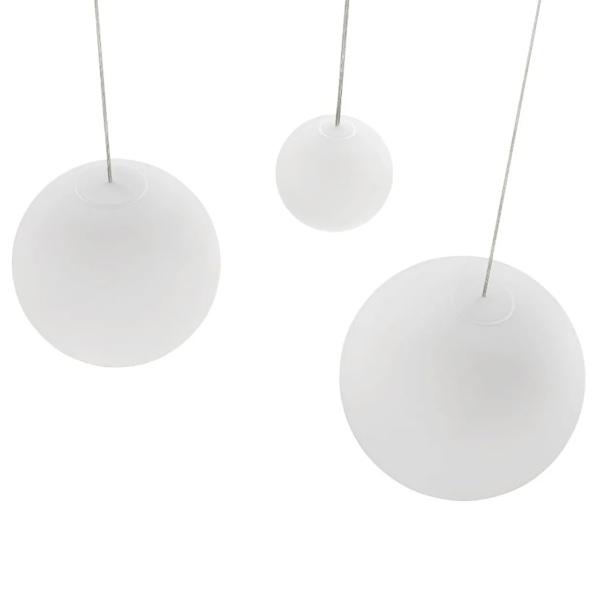 Material: Munblåst opalglas, PVC-sladd, stålkabel