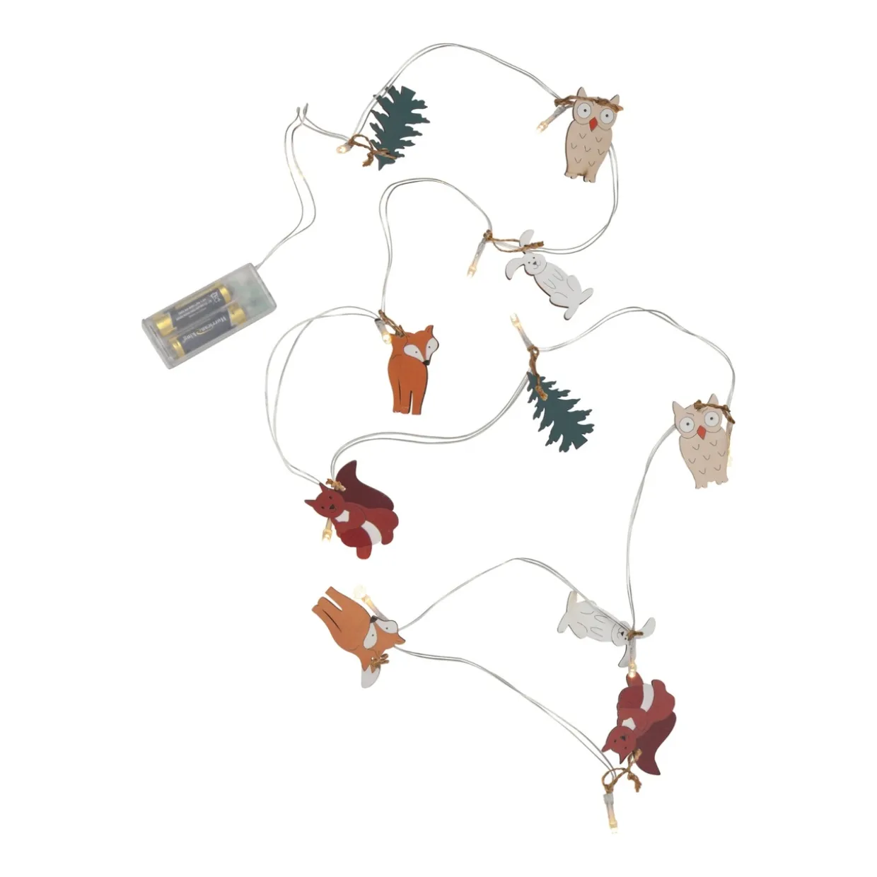 Ljusslingan sprider ett mjukt och mysigt sken som blir en fin detalj i barnrummet, vardagsrummet eller som dekoration till jul och fest. Den är dessutom perfekt att matcha med andra produkter i Forest Friends-serien, vilket gör det enkelt att skapa en enhetlig och stämningsfull inredning.