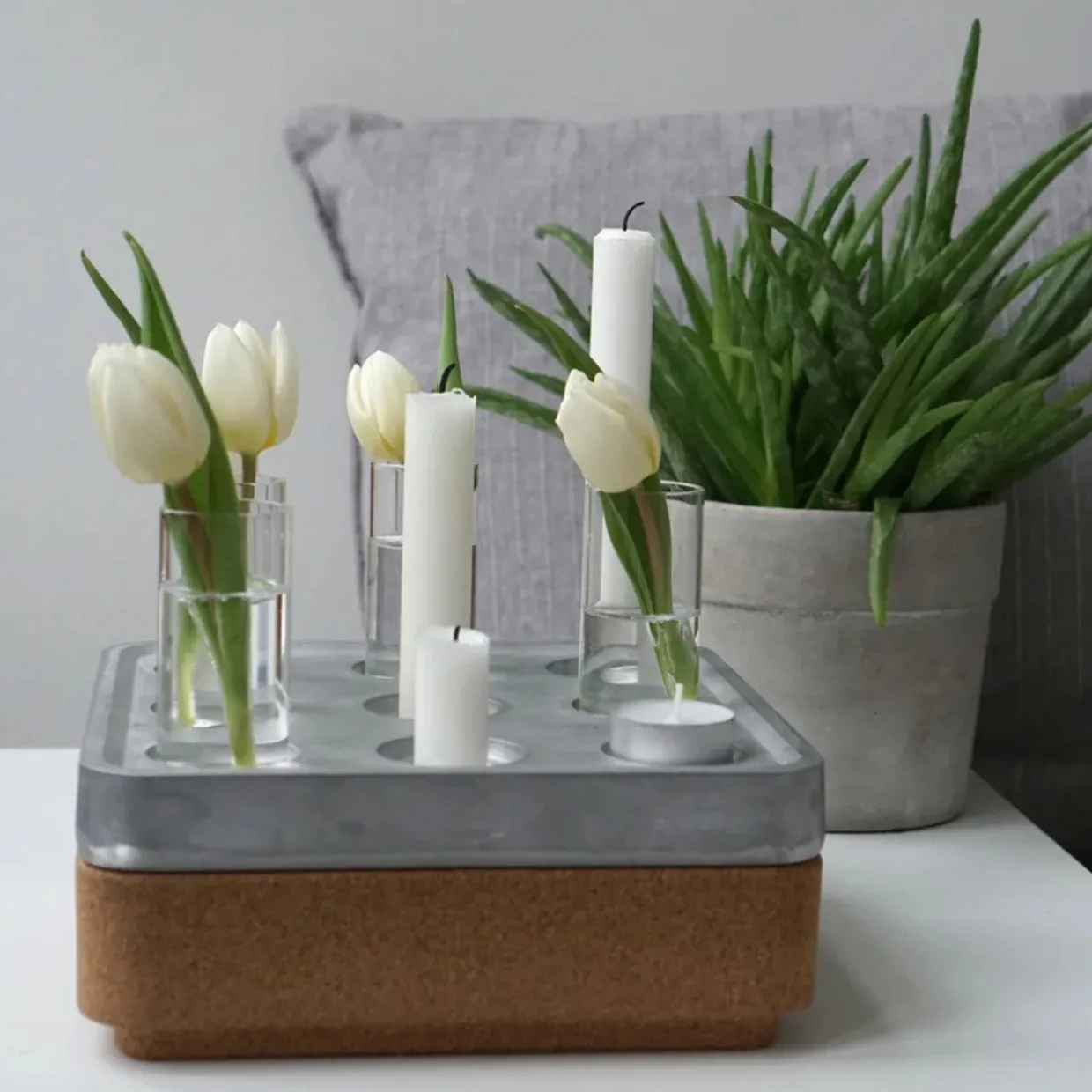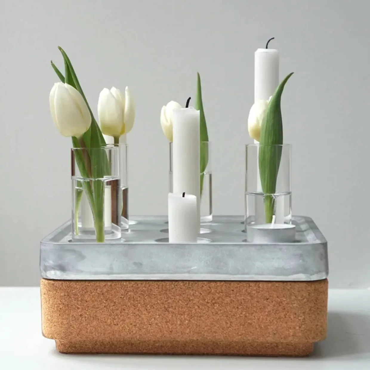 Stumpastaken gåvoset från Born in Sweden är en stilfull och praktiskt ljusstake som kan användas på många olika sätt. I detta set ingår själva stumpastaken med plats för 9 ljus, 4 stycken vaser, tändstickor och en praktiskt korklåda där du kan förvara ljusstumpar, värmeljus eller tändstickorna. Stumpastaken gåvoset är en perfekt present som är tillverkad av 100% returaluminium och riskerar därför inte att ta eld när ljusen brinner ner.