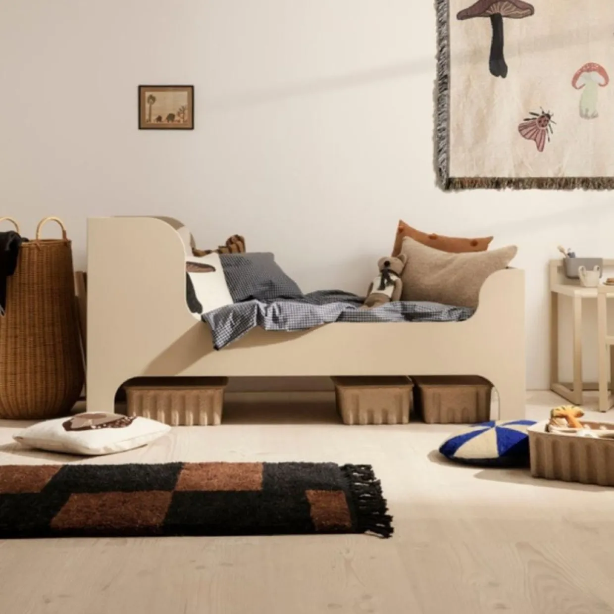 Matta Mara 120×180 cm från danska Ferm Living är handvävd i ull och bomull. Mattan har klassiska fransar mixat med moderna inslag i form av det lekfulla mönstret. Den tjocka kvalitén ger ditt hem en ombonad känsla! Mattan finns i flera färger och storlekar.