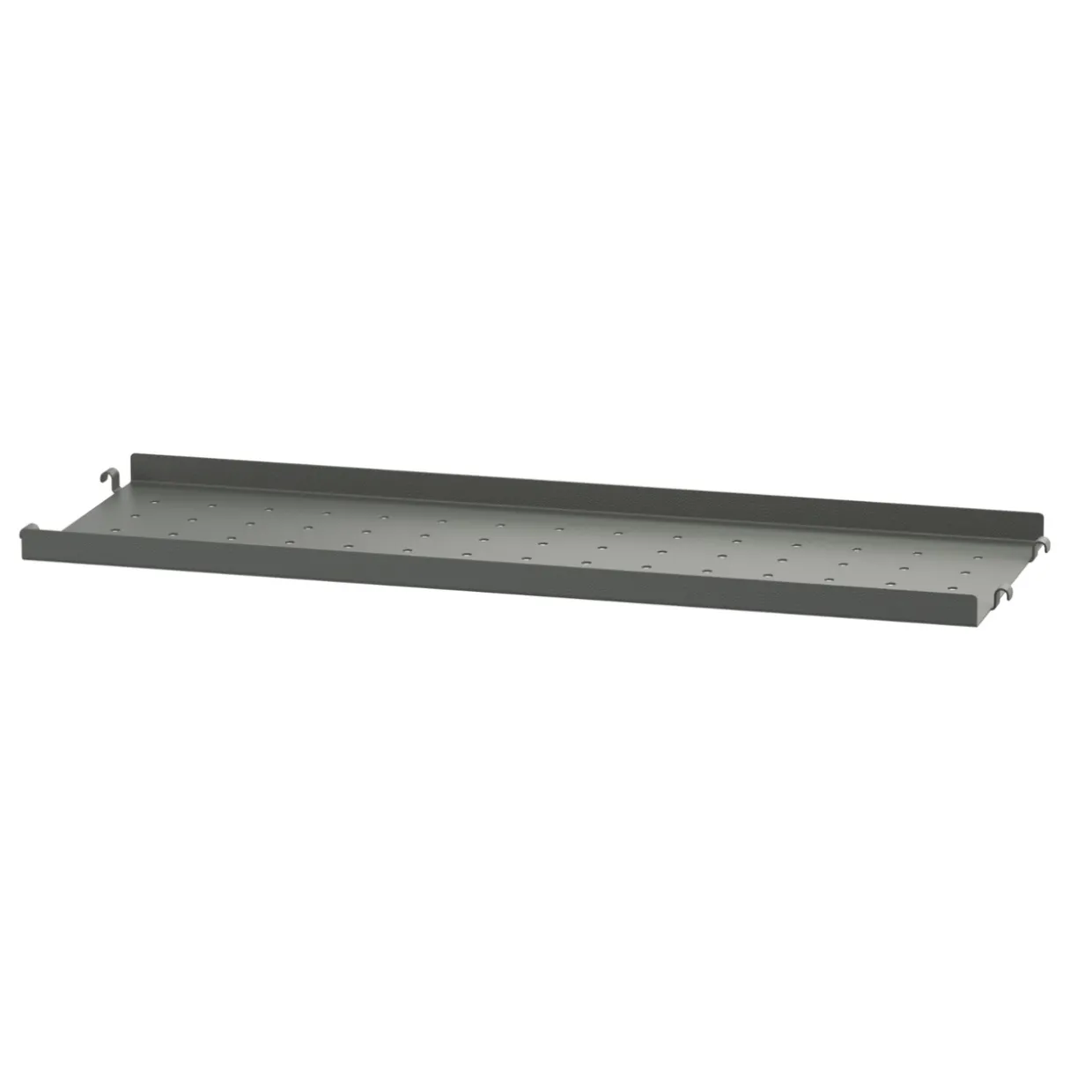 Metallhyllplan med låg kant finns i två bredder, 58 och 78 cm, och två djup, 20 och 30 cm. Kombinera din metallhylla med krokar, stänger, spjut och flaskhållare för extra funktionalitet.
