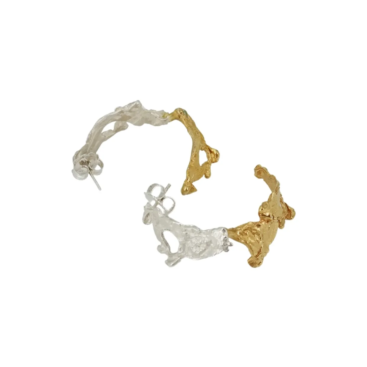 En stilla hyllning till naturens kraft, där varje smycke bär spår av trädens tysta styrka och vattnets mjuka flöde. Smyckena fångar naturens mönster – från grenarnas förgreningar till vattnets dans – och speglar livets eviga rörelse. Handgjorda med omsorg för den som vill bära naturens viskningar nära sitt hjärta. Dessa örhängen är tillverkade för hand i Sverige av återvunnet silver och delvis förgyllda med 24K guld. De är designade med en harmonisk kombination av guld och vitt, vilket ger örhängen en konstnärlig och elegant känsla.Natur Kollektion: Flodens Dans Örhängen.