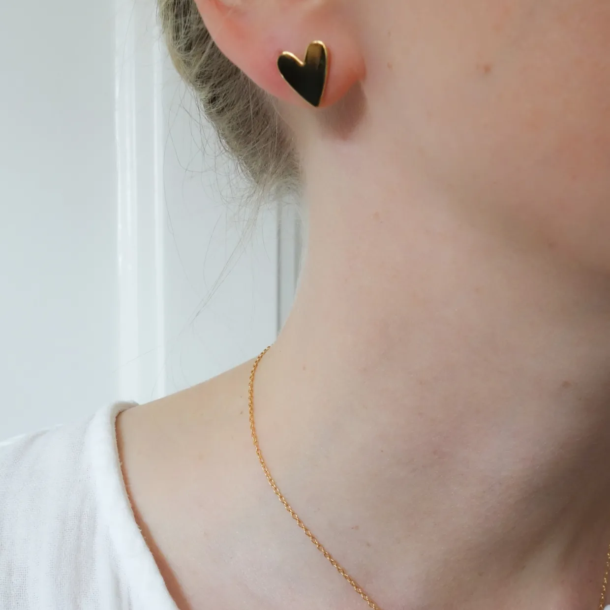 Örhängen Freja med hjärtberlock i guldpläterat silver. Freja är örhängena som bär på mer än bara form med sin stilrena berlock i form av ett hjärta påminner de om kärlek, styrka och närvaro i vardagen. Den enkla, tidlösa designen gör dem till ett par örhängen som passar alla stilar och tillfällen.