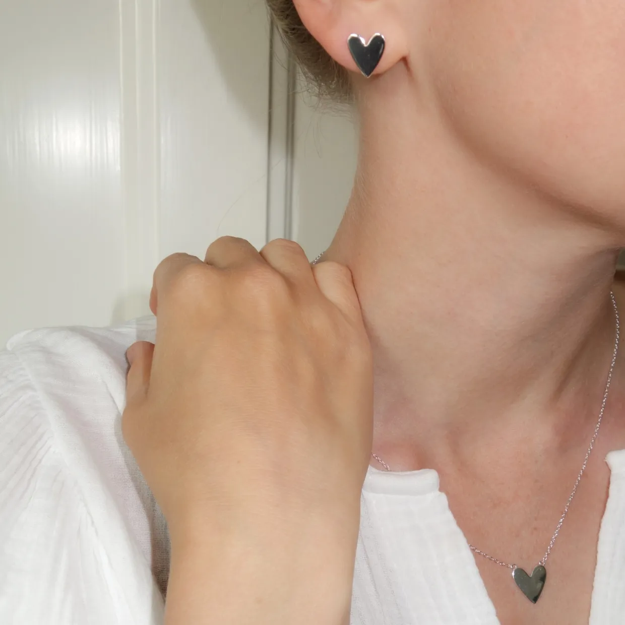 Örhängen Freja med hjärtberlock i silver. Freja är örhängena som bär på mer än bara form med sin stilrena berlock i form av ett hjärta påminner de om kärlek, styrka och närvaro i vardagen. Den enkla, tidlösa designen gör dem till ett par örhängen som passar alla stilar och tillfällen.