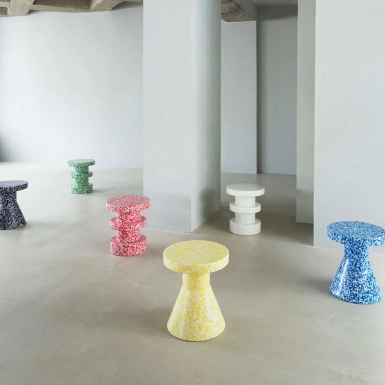 Med sin lekfulla form och sitt fascinerande utbud av nyanser kommer Bit att ge en känsla av personlighet till alla miljöer. Lägg till lite elegans i skyltfönstret, lobbyn eller hotellrummet eller bjud in Bit till ditt hem för att lysa upp ditt vardagsrum eller barnens sovrum. Var du än väljer att placera den, kommer Bit definitivt att få ett leende på läpparna. Pallens pixlade yta består av små bitar av 100% återvunnen hushålls- och industriplast. Tillverkad i Italien.