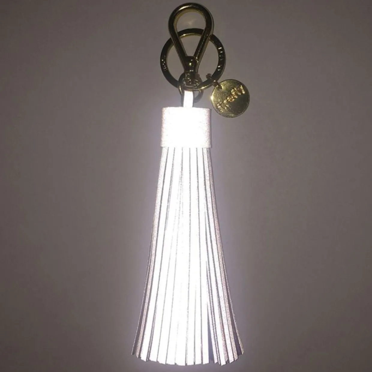 En elegant och klassisk tofs i mjukt reflekterande material, perfekt till favoritväskan, jackan eller på barnvagnen! Det reflekterande materialet i tofsen är mjukt och ser ut som skinn, Tofsen har handsydda stygn bak för en elegant look. Förpackad i en egen liten låda.