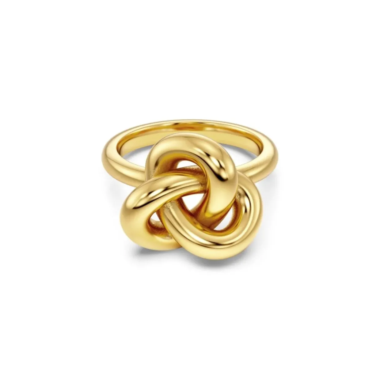 Den skulpturala evighetsknuten i serien Infinity Knot är en tidlös klassiker. De obrutna linjerna i knuten symboliserar kontinuitet. En kraftfull symbol som passar alla tillfällen. Här med knutformen i en överdimensionerad ring i 14K guldplätering. Fin att kombinera med seriens längre halsband, statementarmband eller större studs.