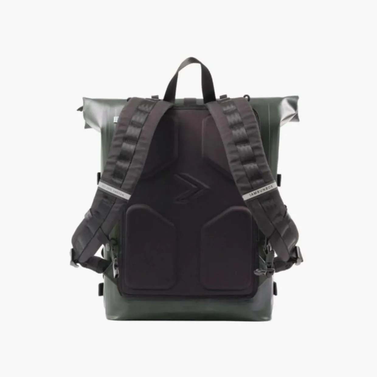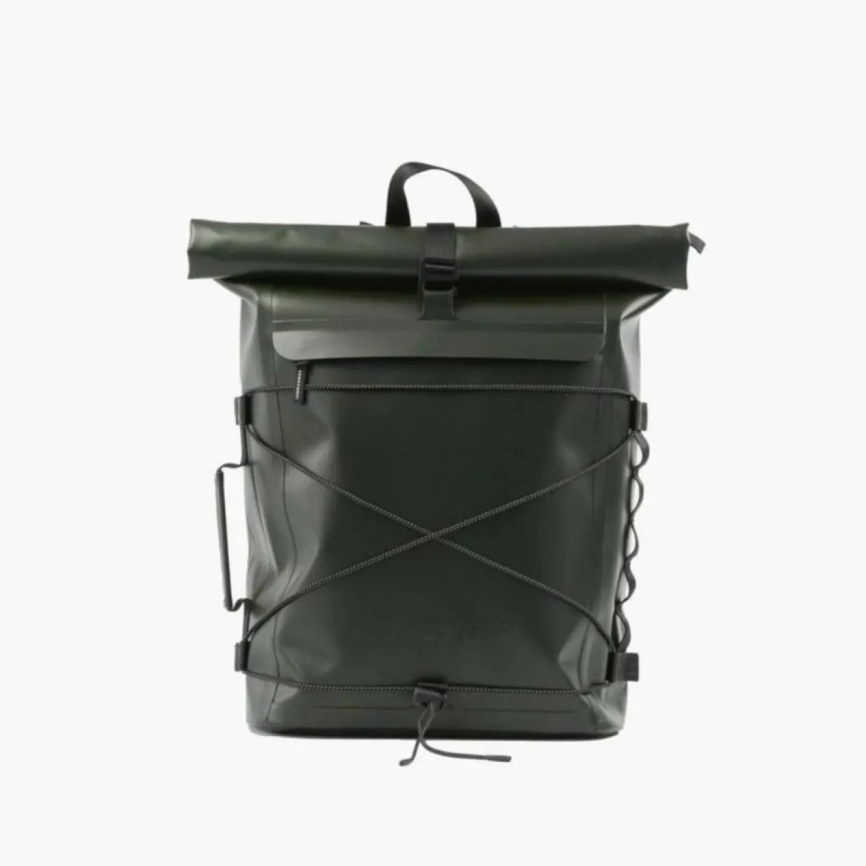 Recycled Pannier Rolltop i färgen grön från det svenska varumärket IAMRUNBOX är vattentät och rymmer hela 22 liter. Den är klimatneutral och gjord av återvunna plastflaskor, närmare bestämt 58 stycken!