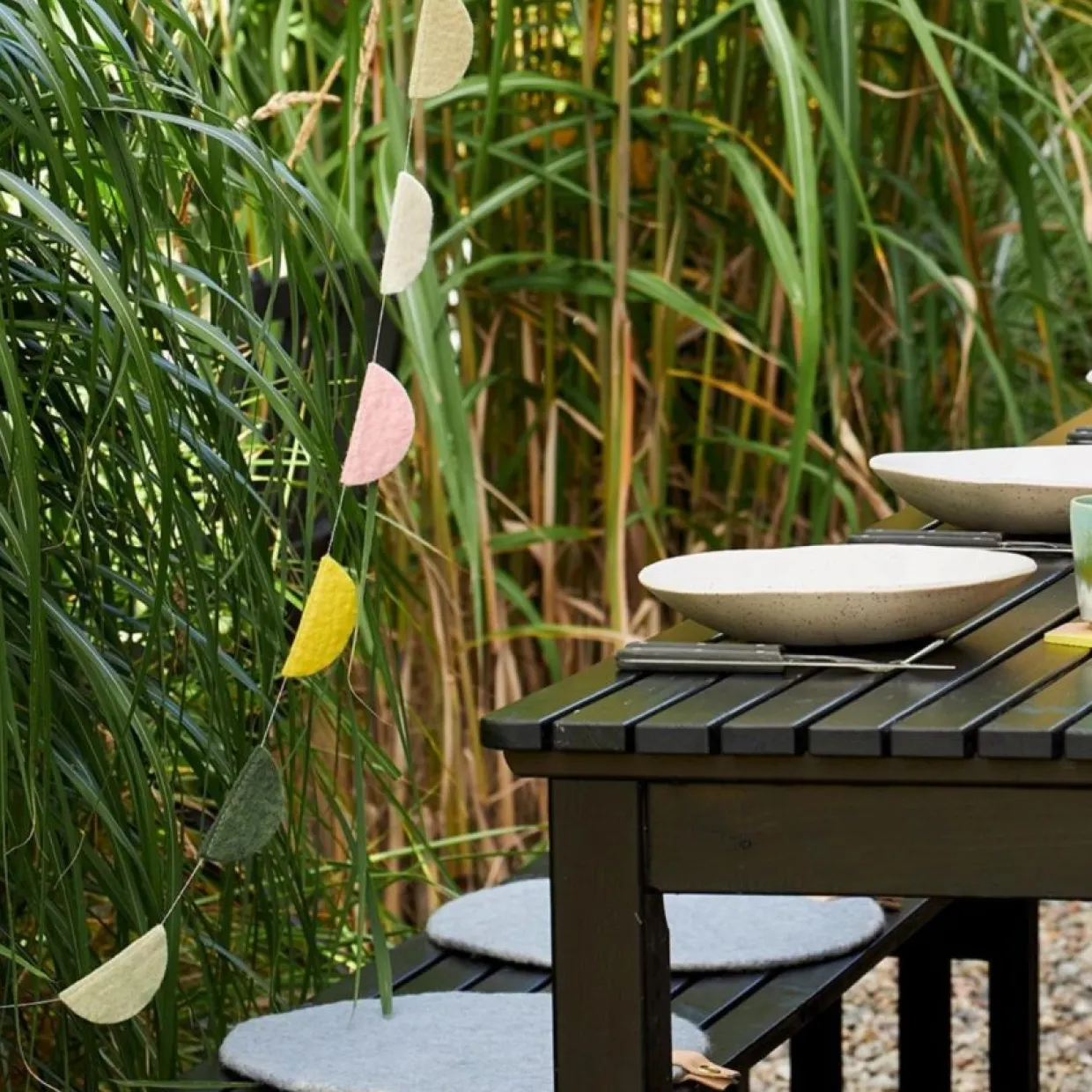 Avevas handgjorda sittdynor i ull, färgade med naturliga färger på ena sidan och gråmelerad ull på andra. Sittdynan har en läderdetalj med ögla, för till exempel upphängning. Lädret som är ekologiskt certifierat kommer från svenska gårdar och är raffinerat genom vegetabilisk garvning.