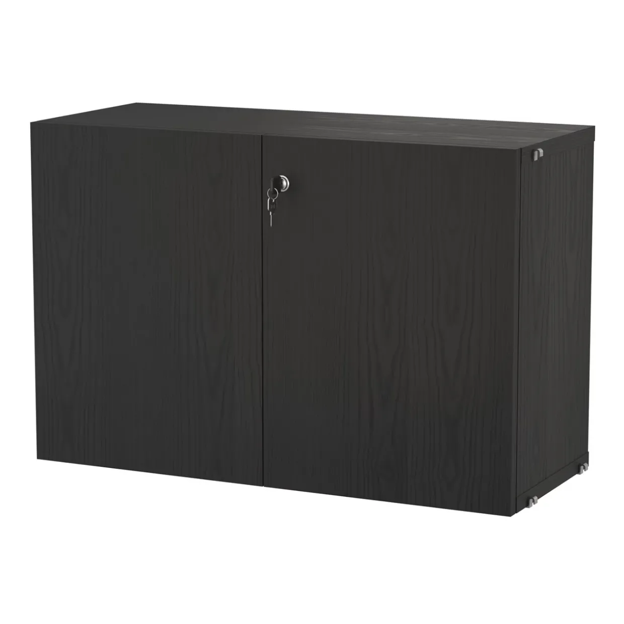 Skåp med lås finns i en bredd, 78 cm, ett djup, 32 cm, och en höjd, 52 cm. Kombinera det med golvgavlar från String® System för att skapa en optimal lösning för arbetsplatsen, där du får plats med alla dina pärmar, kablar, papper och liknande. Dörrarna är försedda med tryck-och-öppna beslag, och den högra dörren är låsbar med två medföljande nycklar. Skåpets innermått är: b74 x d29 x h47 cm, och det har två innerhyllplan som kan justeras till valfri höjd.