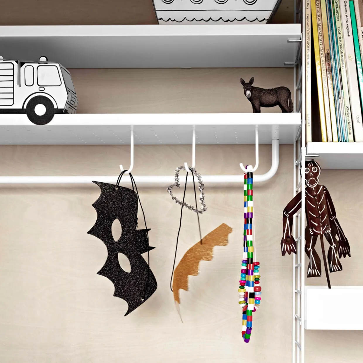 String stång i grålackad metall som passar till samtliga metallhyllplan från String. Perfekt till hallen.