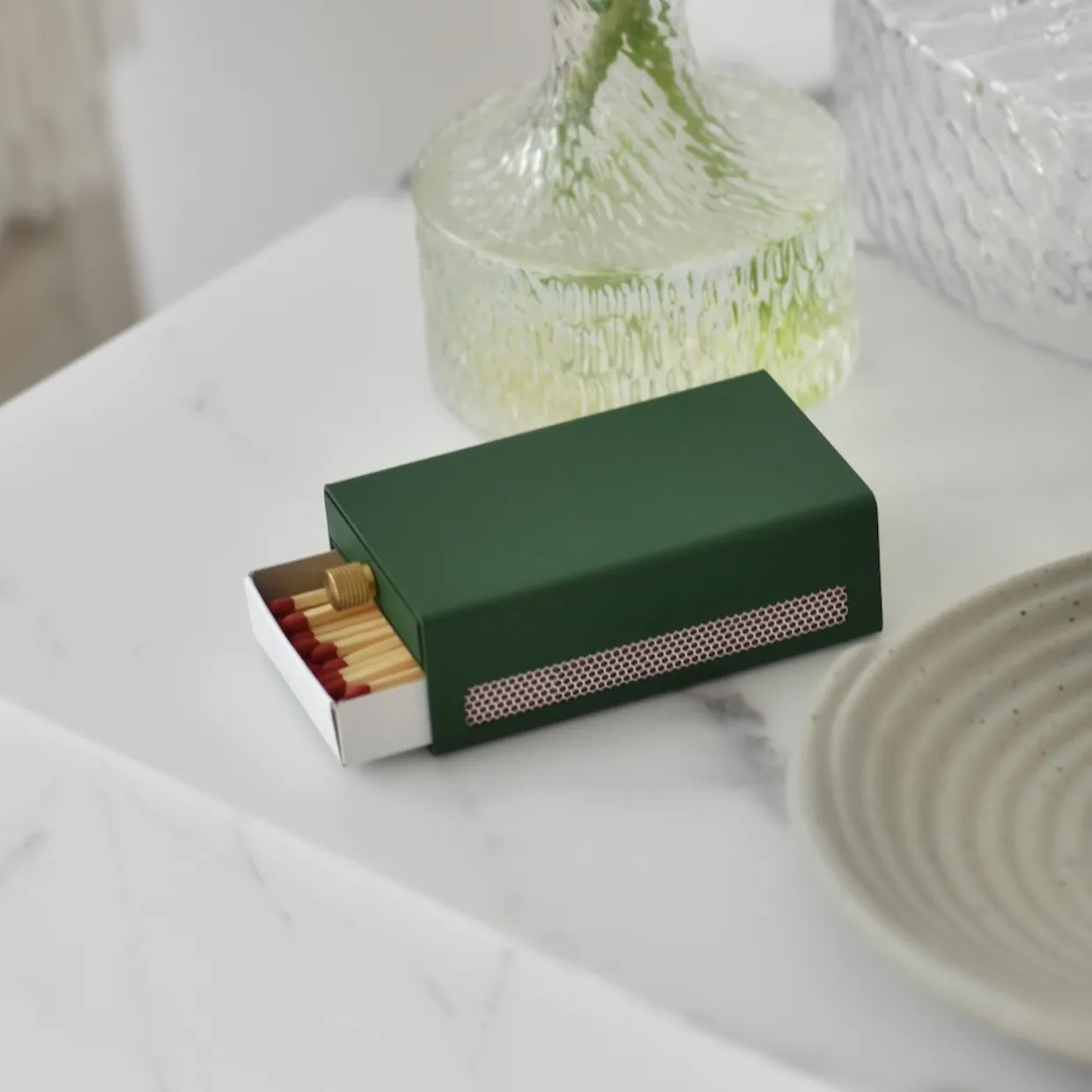 Ett stilrent tändsticksfodral från Solstickan Design som gör din vanliga tändsticksask till en vacker inredningsdetalj. Fodralet har även en smart förvaringslåda för dina använda tändstickor, en snygg och praktisk funktion. Tillverkad i pulverlackerat stål med en elegant mässingsknopp. Fodralet levereras med en stor tändsticksask med cirka 50 stycken långa tändstickor.