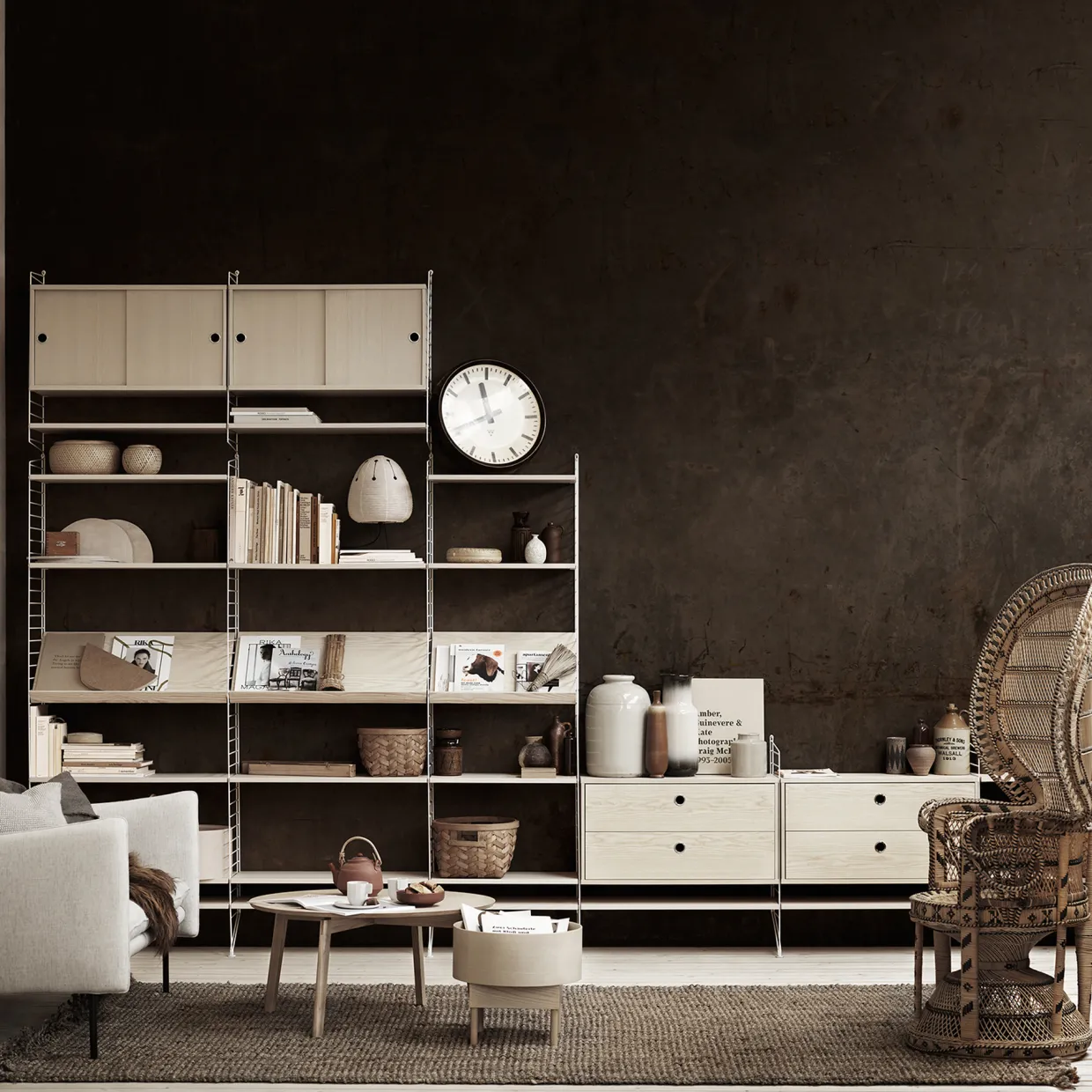 Tidsskriftshyllorna i trä finns i två bredder, 58 cm och 78 cm, och passar med 30 cm djupa trådgavlar från String® System. Tidsskrifthyllorna skapar karaktär och ger dig möjlighet att visa din favoritbok eller bryta av din bokhylla med en plats för tidningar och magasin. Välj bland olika färger och träslag som passar just din stringhylla. Det medföljer upphängningsbeslag i förpackningen