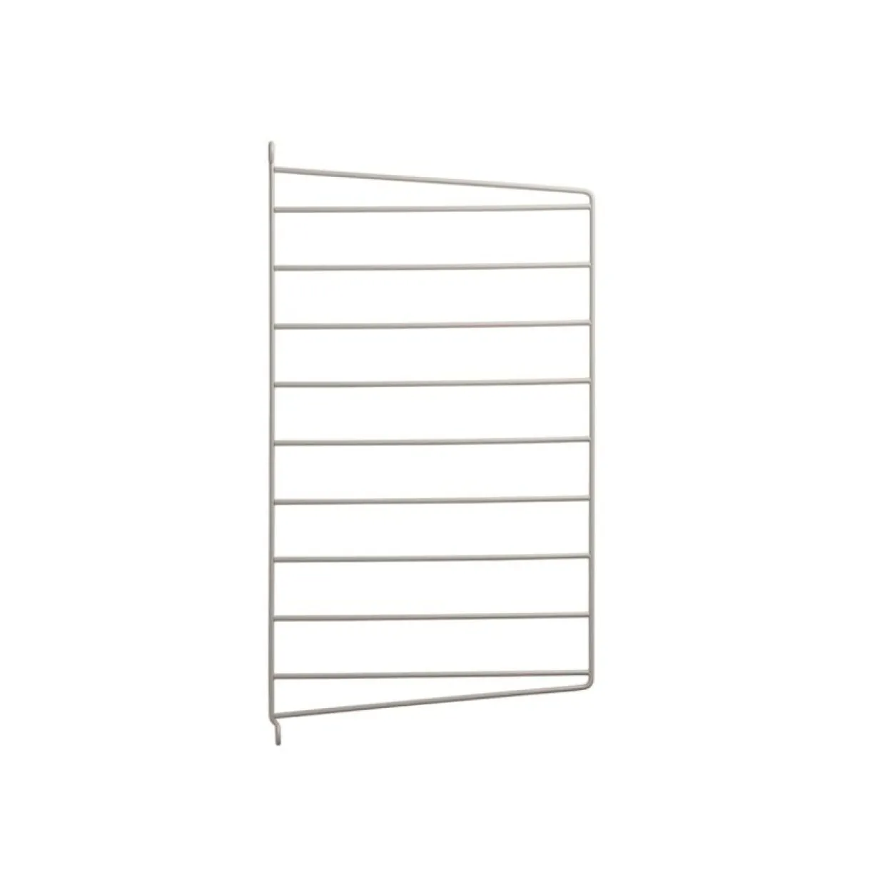 Väggavlarna finns i två höjder, 50 cm och 75 cm, samt två djup, 20 cm och 30 cm. Gavlarna är basen för att bygga din stringhylla. Därefter kan du addera produkter från String System. Välj mellan en rad olika produkter så som hyllplan och skåp. Väggaveln skruvas fast på väggen och rör varken golv eller tak vilket gör den flexibel och lätt att anpassa efter utrymmet. För att göra din hylla ännu mer funktionell och unik kan du även komplettera med organizers och s-krokar som hängs på gaveln. Väggavlarna säljs i både 1-pack och 2-pack.