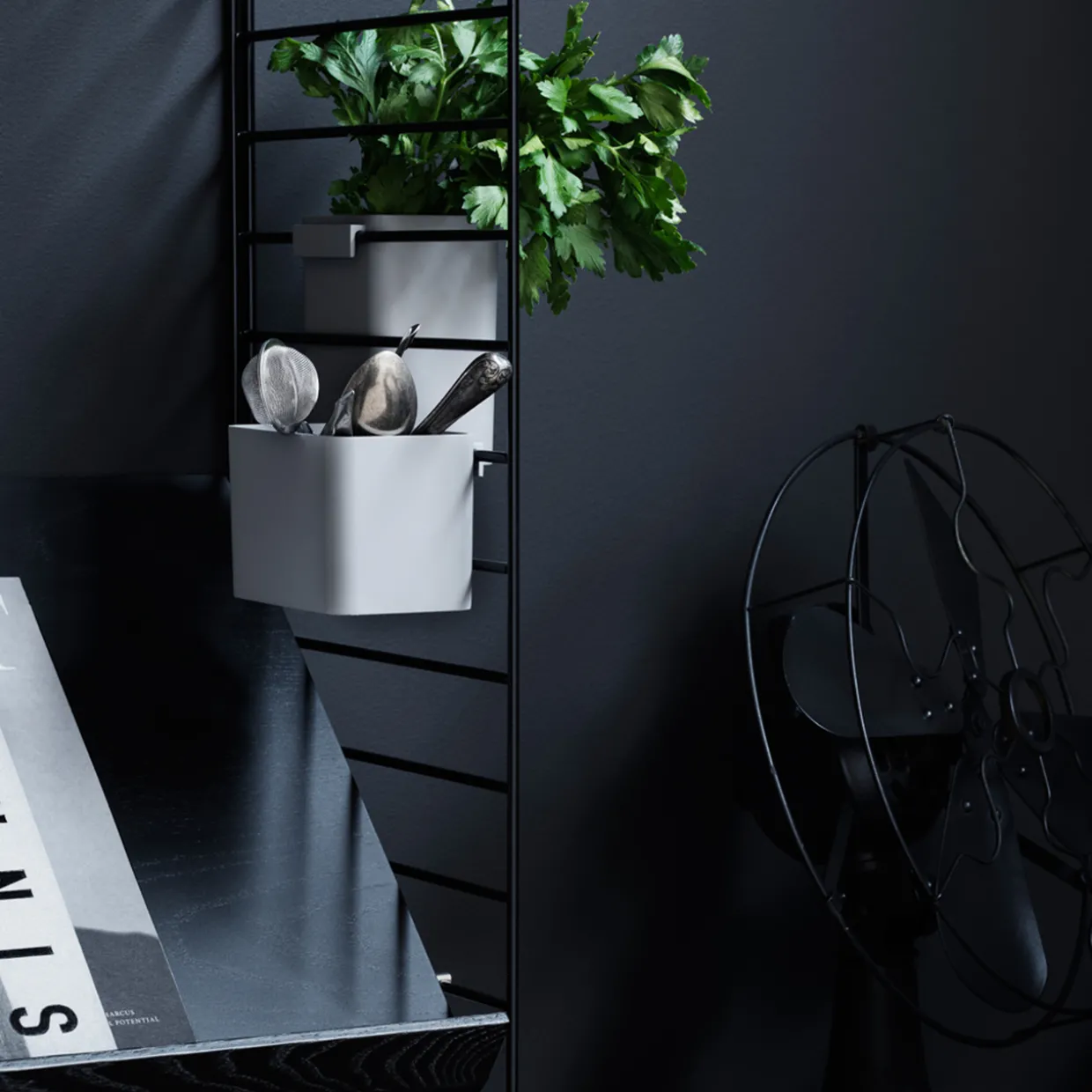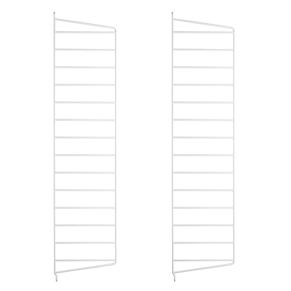 Väggavlarna finns i två höjder, 50 cm och 75 cm, samt två djup, 20 cm och 30 cm. Gavlarna är basen för att bygga din stringhylla. Därefter kan du addera produkter från String System. Välj mellan en rad olika produkter så som hyllplan och skåp. Väggaveln skruvas fast på väggen och rör varken golv eller tak vilket gör den flexibel och lätt att anpassa efter utrymmet. För att göra din hylla ännu mer funktionell och unik kan du även komplettera med organizers och s-krokar som hängs på gaveln. Väggavlarna säljs i både 1-pack och 2-pack.