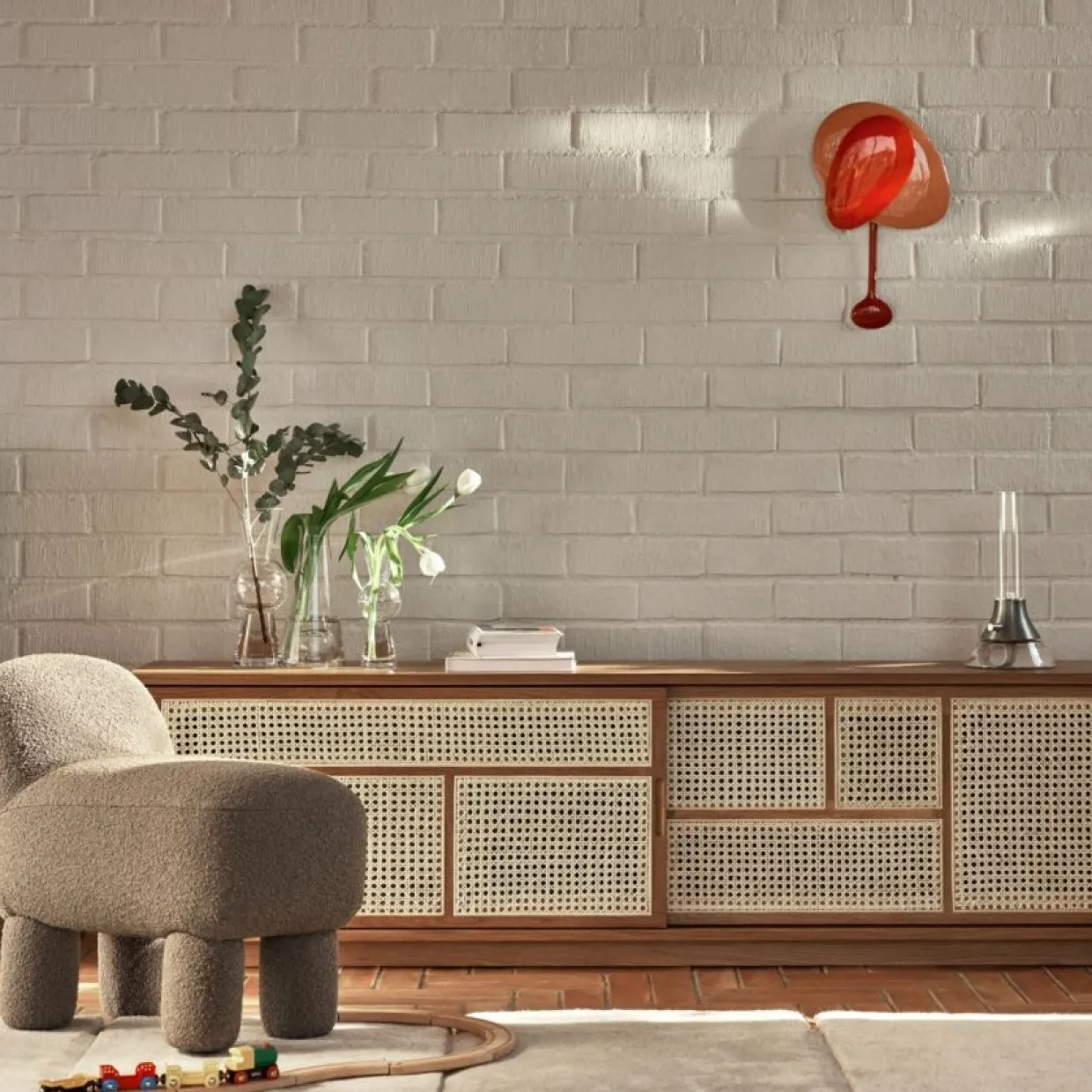 Väggklocka Mellow – Alla dessa klockor som ständigt påminner om hur snabbt tiden flyr. Vad var det nu vi skulle hinna? Vad missade vi? Stressigt värre. Joe Parrs Mellow Clock presenterar en ny syn på tid: klockan som en lekfull skulptur, tiden förvandlad till form. Allt i en klocka som låter konst möta design. Visarna lever sitt eget liv när färg och form förändras allt efter hur dagens ljus ändrar intensitet. Den skulpturala formen ger klockan en gracil närvaro som utan att dominera integrerar väl med alla typer av inredningar. Mellow Clock är både konstverk och en helt funktionell skulptur, enligt Joe Parr. Helt gjord i aluminium med konkava former, och med en helt tyst pendel som sakta rör sig av och an.