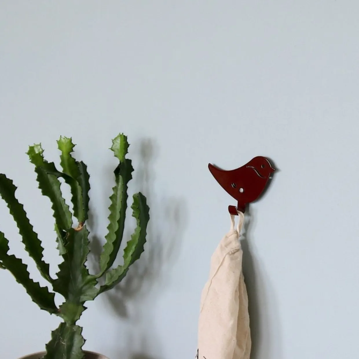 En lekfull väggkrok i form av en Domherre, där fågelns ben blir till krokar. En fin och inbjudande inredningsdetalj i hallen eller i barnrummet för barnet att hänga upp sina kläder, väskor och leksaker på. Svensktillverkad i pulverlackerat stål. Levereras med skruvar och distanser. Distanserna ger en fin och effektfull skugga på väggen.