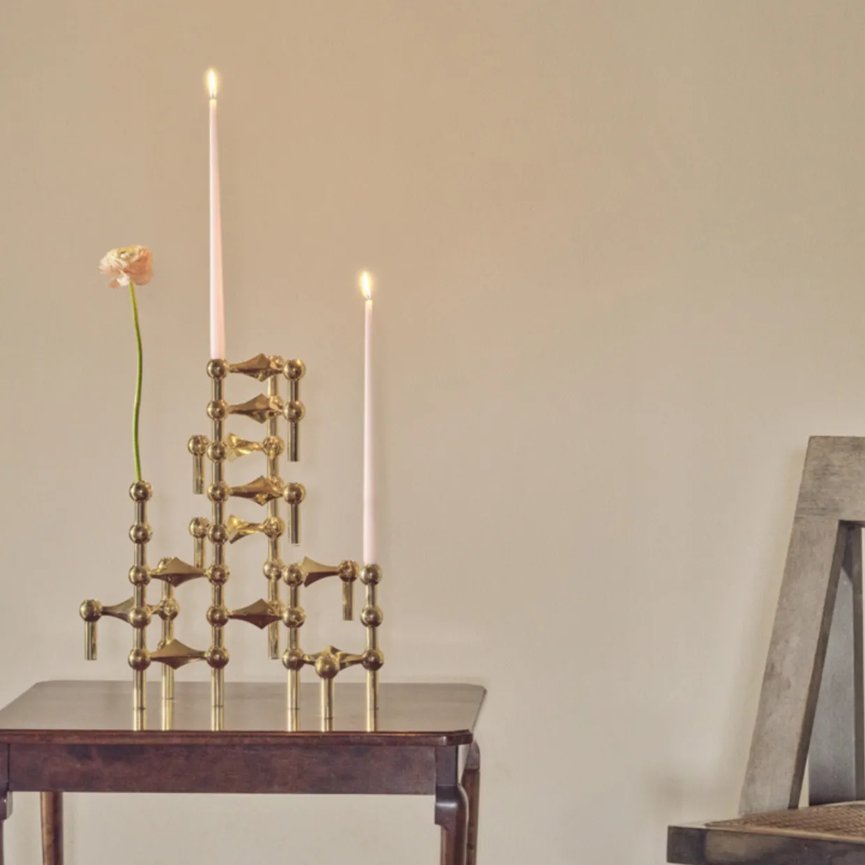 Den är formgiven som en naturlig förlängning av STOFF Nagels karakteristiska uttryck och kan kombineras med både ljusstakarna, skålen och stället. Vasen tillför en extra dimension till den klassiska designen och gör det möjligt att addera en färgstark blomdekoration efter din egen smak.