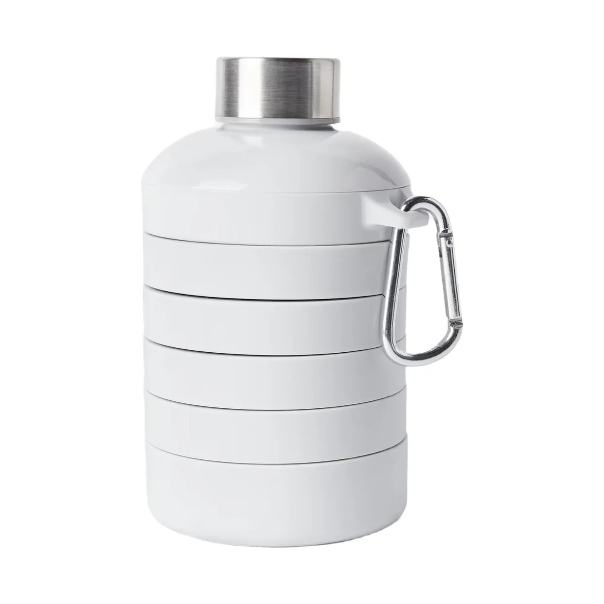 Praktiskt vattenflaska som du enkelt trycker ihop eller drar isär för att göra större eller mindre, perfekt att ta med till gymmet, på utflykten eller promenaden. Flaskan har en karbinhake som gör att du kan hänga den på ryggsäcken eller väskan så att du alltid har den nära till hands.