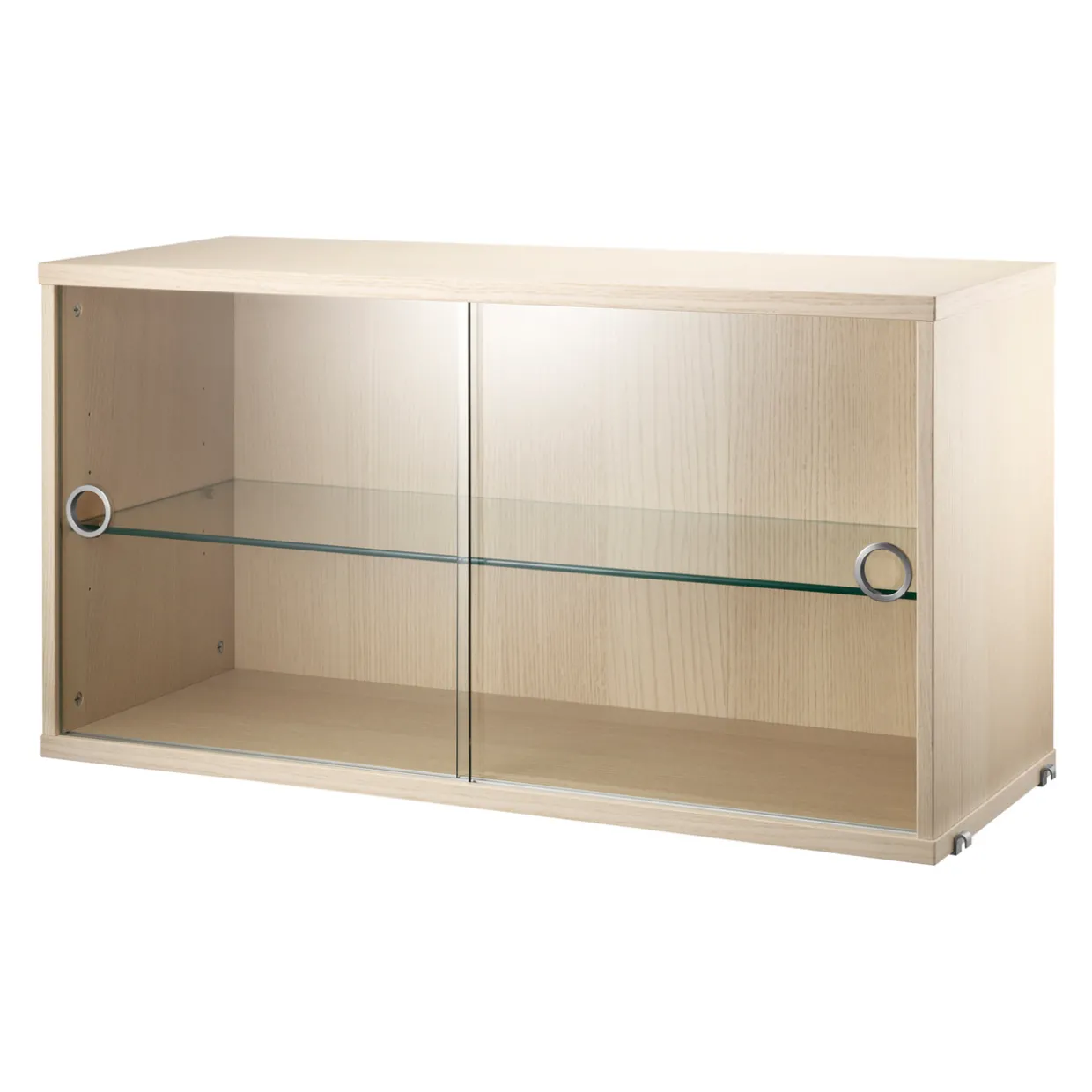 Skåp med glasdörr finns i en bredd, 78 cm, samt ett djup, 30 cm. Skåpet passar med tråd- och plexgavlar från String® System förutsatt att gavlarna har 30 cm djup. Det är fint att bryta av din hylla med vitrinskåp som dessutom ger dig extra förvaring eller en perfekt plats att visa upp något ömtåligt. Skåpet består av ett innerhyllplan som kan justeras efter behov. Insidans djup 26 cm. Mellanhylla i härdat glas och upphängning ingår. Passar till både vägg- och golvgavlar. Dörren är anpassningsbar och går att montera både på vänster och höger sida. Skåpet levereras omonterat.