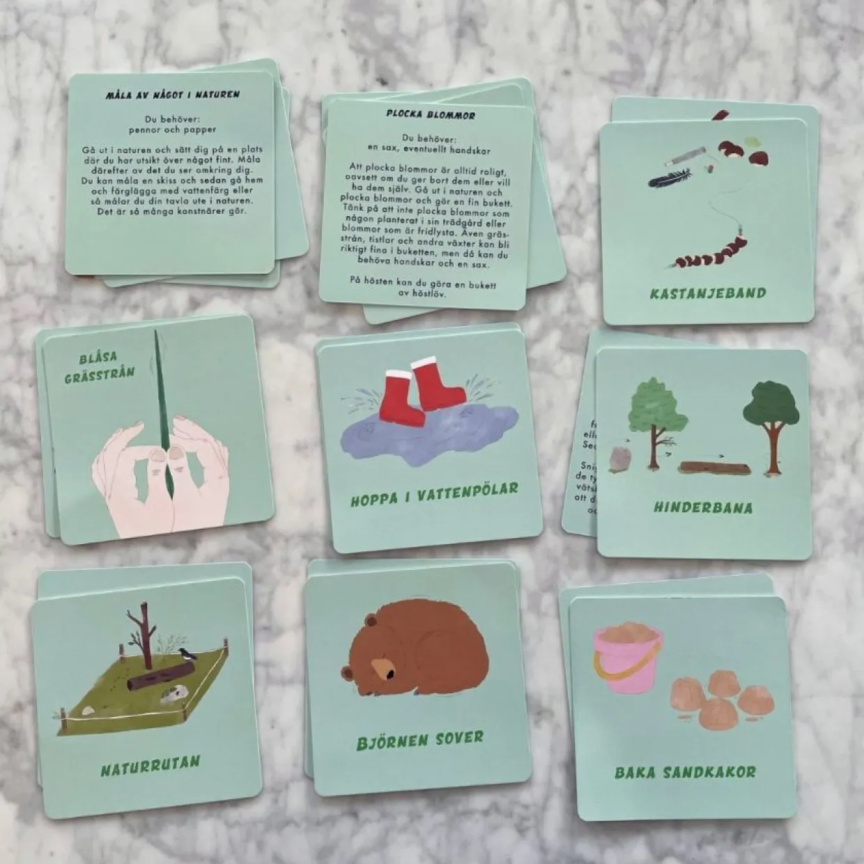 Med Aktivitetskort: Naturen gör du en fågelmatare eller blåser på grässtrån. I denna box finns 50 roliga saker som du kan göra i naturen.