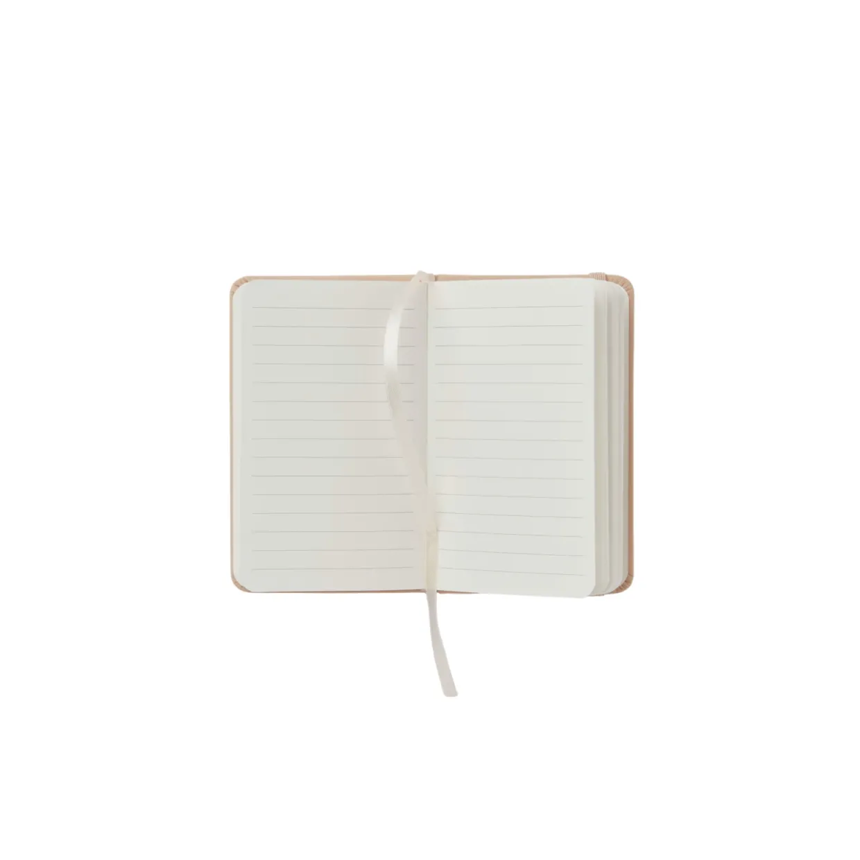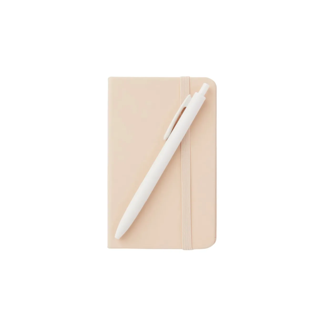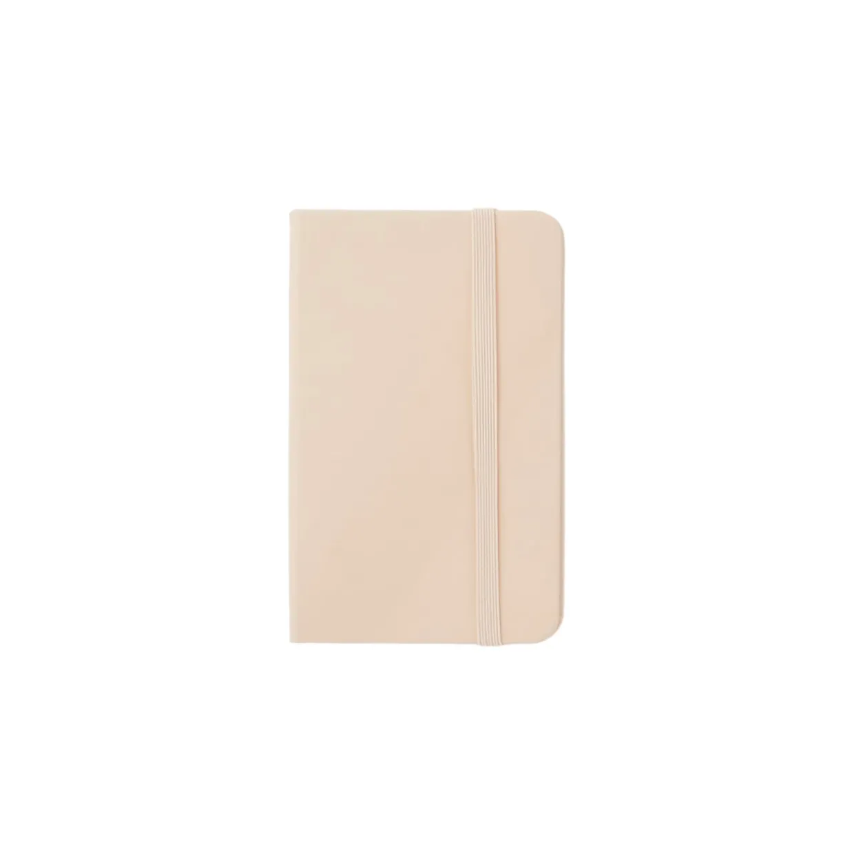 Liten skrivbok klädd i konstläder med färgmatchad elastisk snodd, perfekt att ta med i handväskan eller på resan.