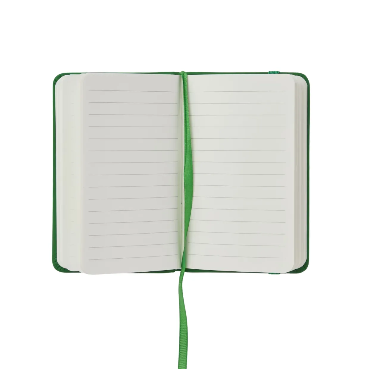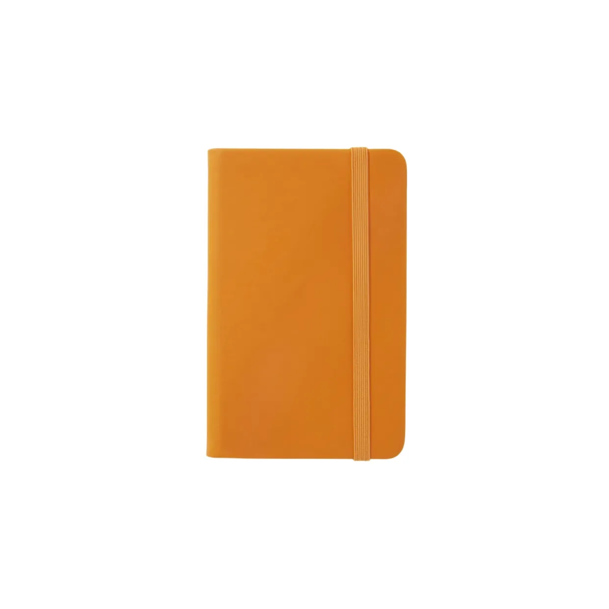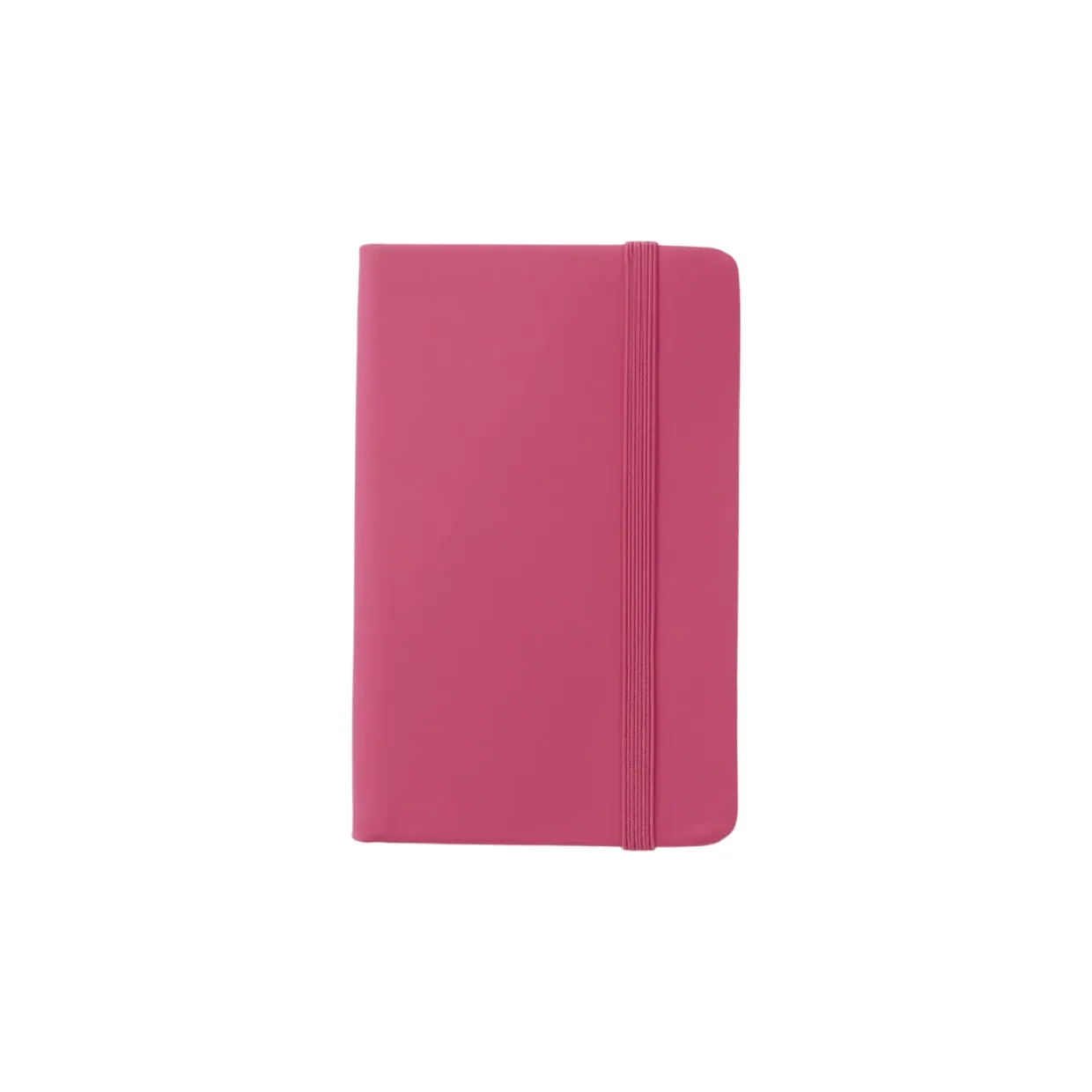 Liten skrivbok klädd i konstläder med färgmatchad elastisk snodd, perfekt att ta med i handväskan eller på resan.