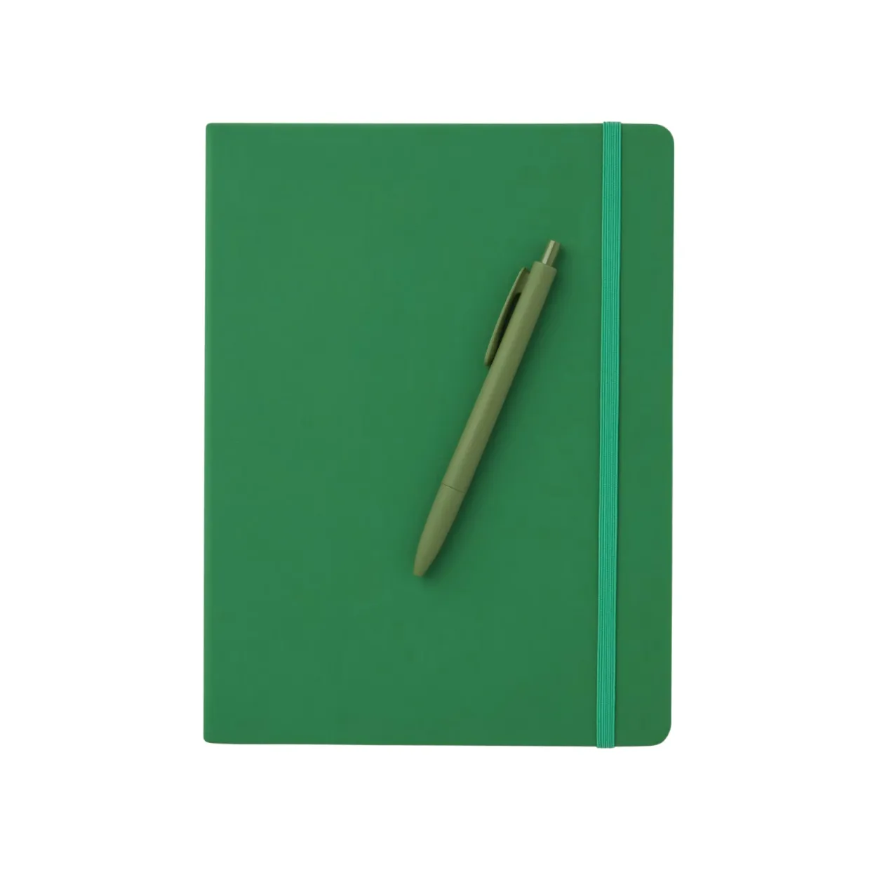 Skrivbok klädd i konstläder med färgmatchad elastisk snodd, perfekt att ta med i handväskan eller på resan.