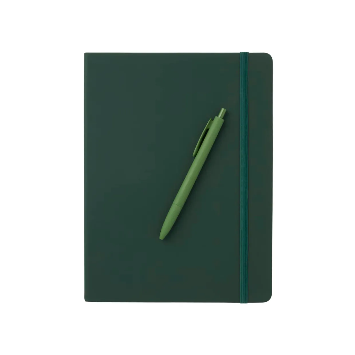 Skrivbok klädd i konstläder med färgmatchad elastisk snodd, perfekt att ta med i handväskan eller på resan.